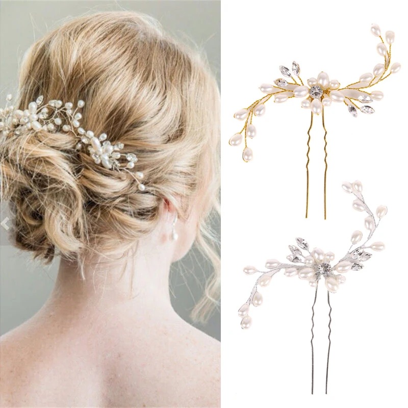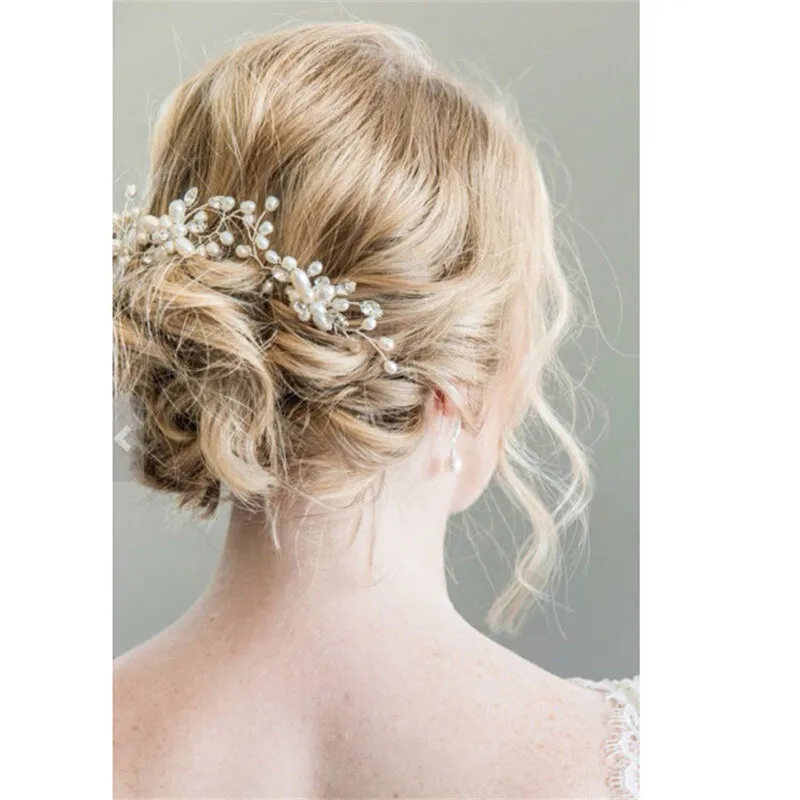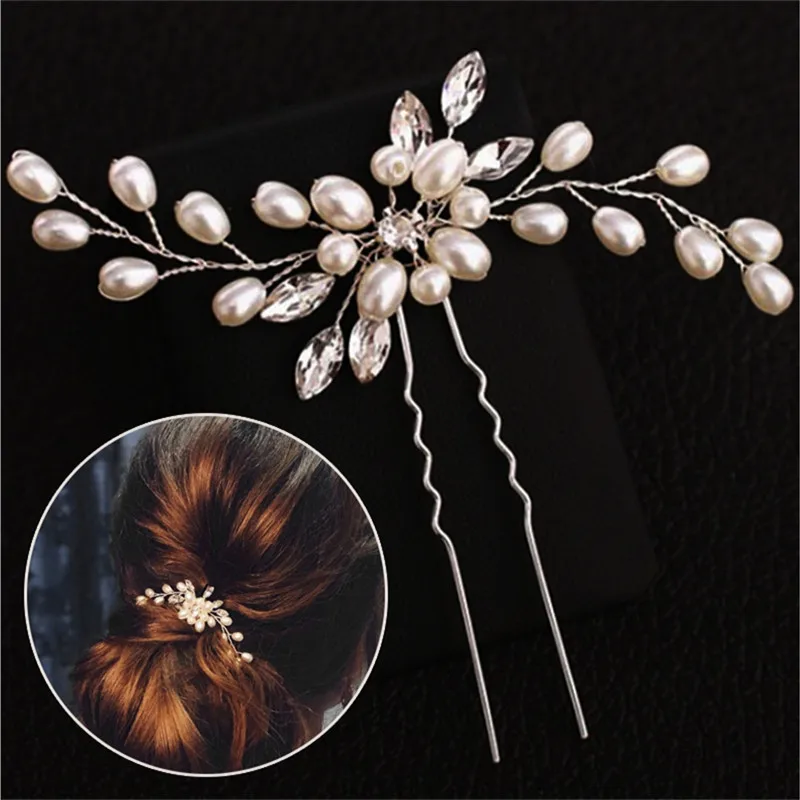 Элегантные Свадебные украшения для волос, заколки для невесты, женские Стразы, головные уборы с жемчугом, милые аксессуары для волос
