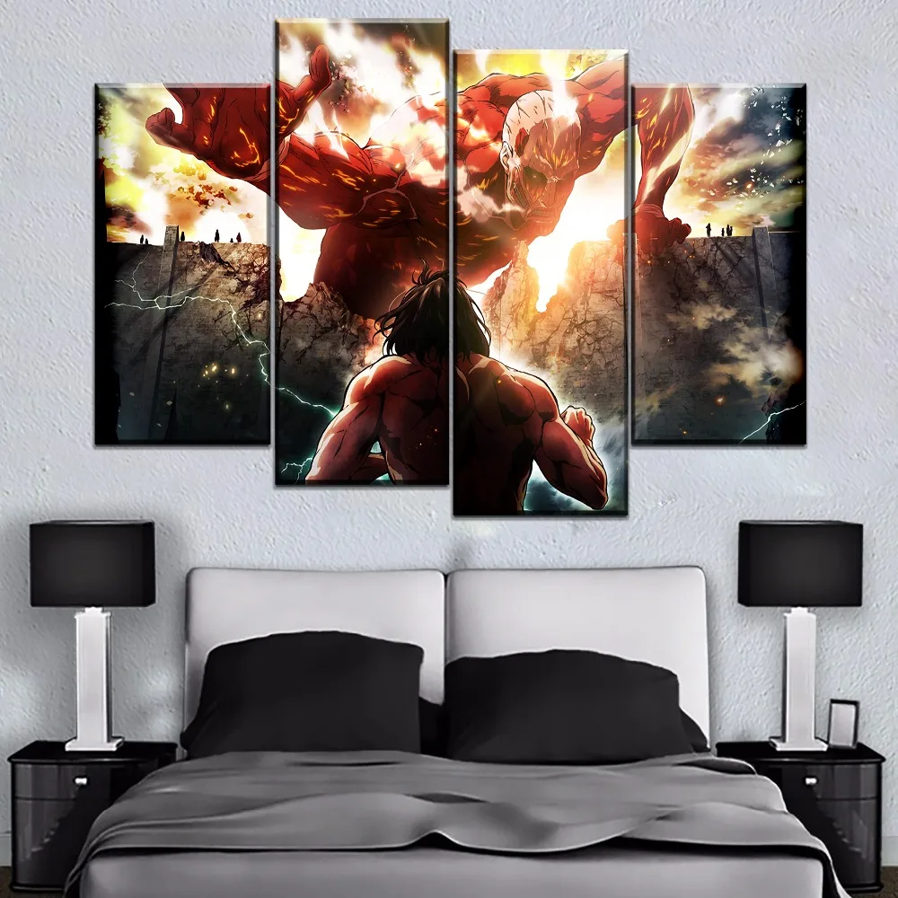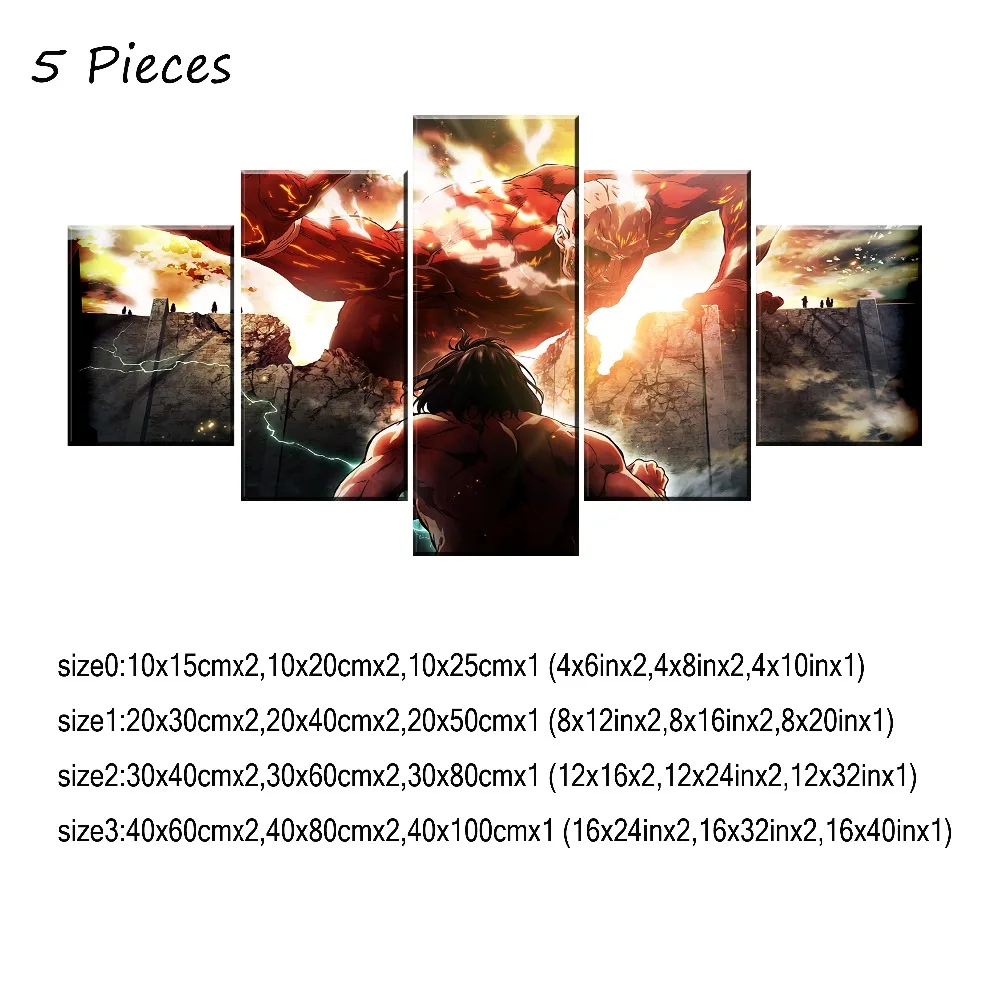 Постер Эрена йера из аниме атака на Титанов, 5 панелей, плакат в HD стиле, картины на холсте для украшения стен, домашний декор