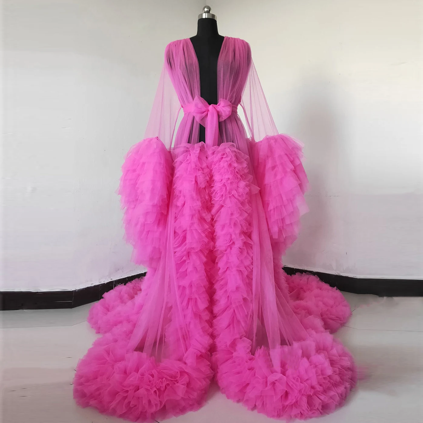 Реальные фотографии, ярко-розовые тюлевые платья для беременных, женские халаты для фотосъемки, прозрачное платье для будущей мамы, Свадебный Халат