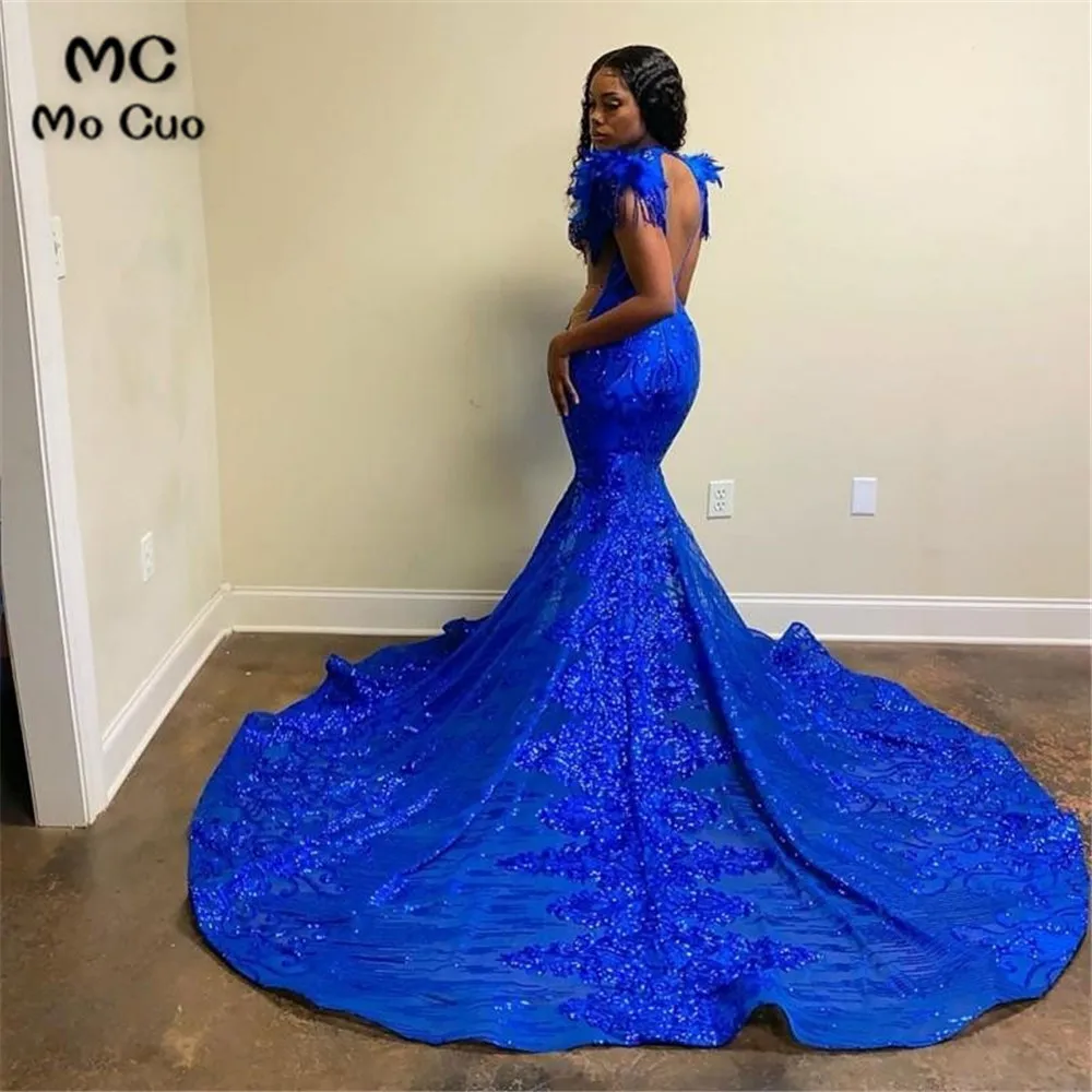2021 африканские вечерние платья Русалочки, длинное бальное платье, расшитое бисером, кружевное платье с блестками, голубое вечернее платье для выпускного вечера