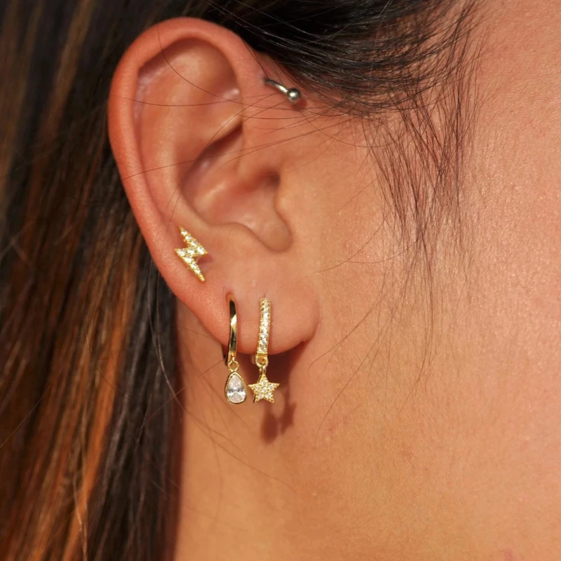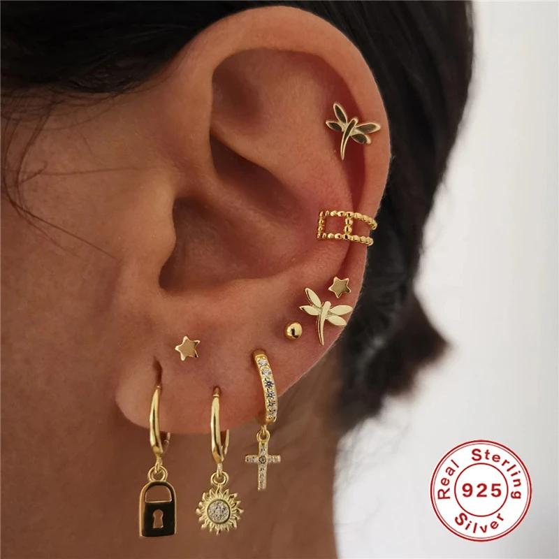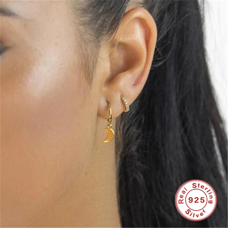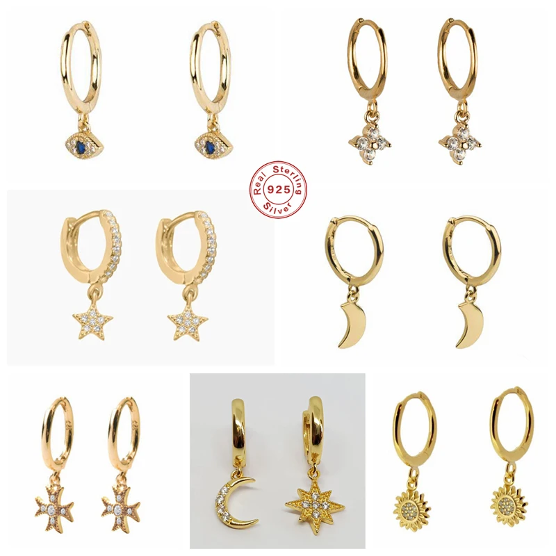 GS 925 Стерлинговое Серебро Циркон в форме сердца с рисунком Луна, звезды кулон длинные висячие серьги для женщин с клипсами Дурной глаз подсолнечника Шарм Круг Серьги капли, высокое качество, прекрасный подарок