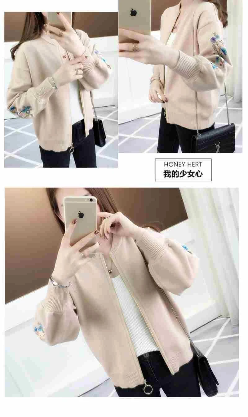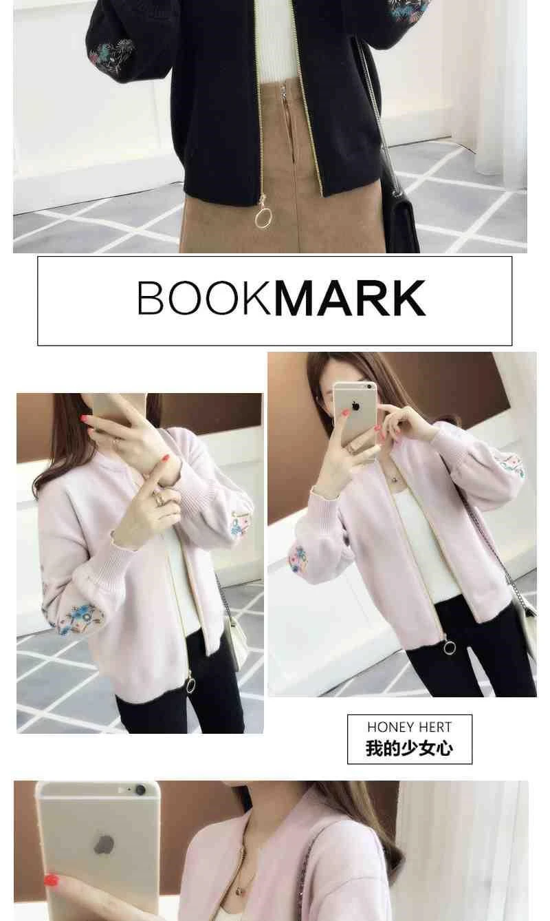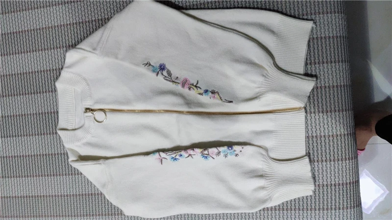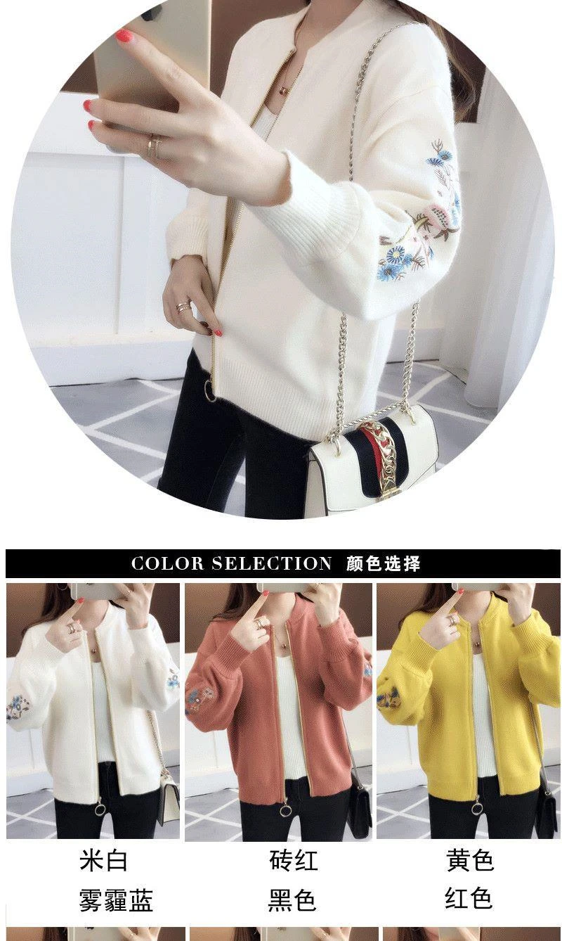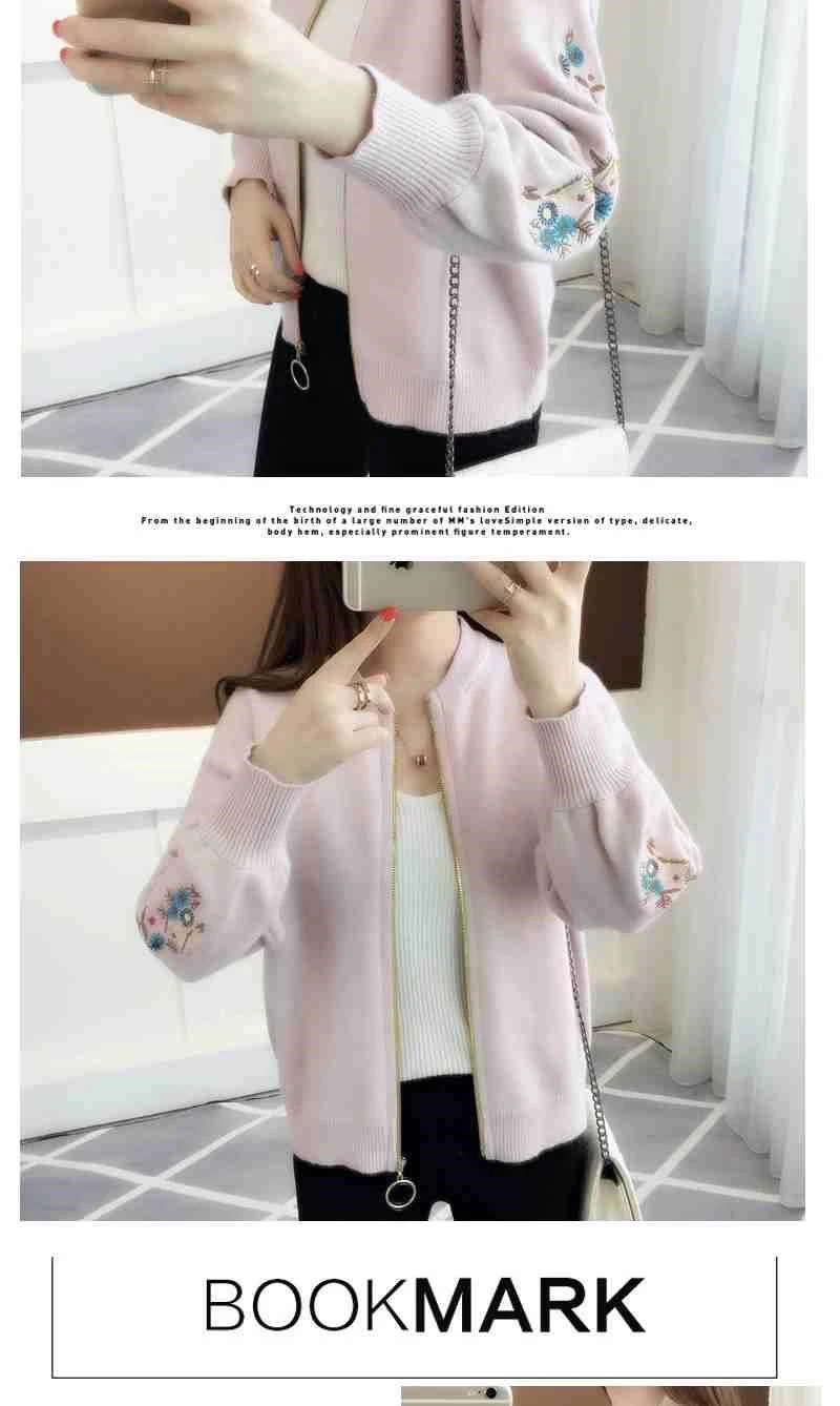 Однотонный вязаный кардиган с вышивкой, пальто, женский корейский свитер на молнии с круглым вырезом и длинным рукавом, Весенняя Повседневная бейсбольная верхняя одежда, топы