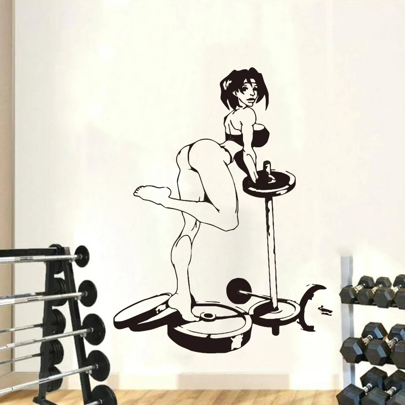 Спортивный фитнес-клуб девушки человек тело Сексуальная стикер настенный для спортзала штанга тренировки Кроссфит упражнения настенные наклейки виниловый Декор