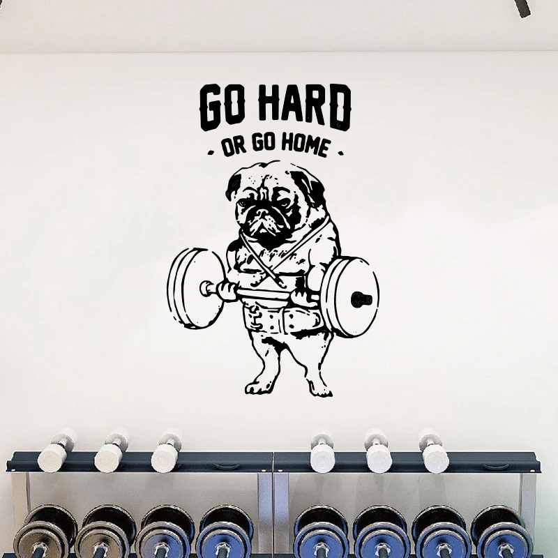 Тренировки спортзал подъем Frech собака стены Стикеры вдохновляющие цитаты Go Hard Or Go Home "Блины для кроссфита Фитнес клуб Наклейка на стену винил деко