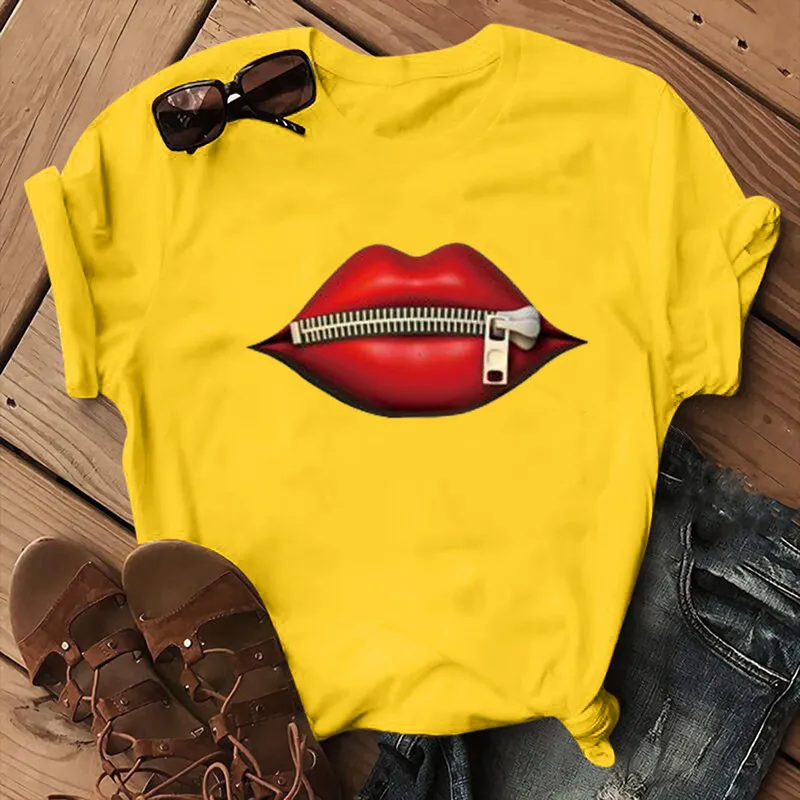 Футболка женская летняя с принтом губ и коротким рукавом, TX5325