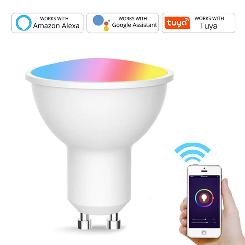 5 Вт GU10 Точечный светильник, Wi-Fi, умный светильник лампа RGB + CW 2700-6500K смарт-лампа дистанционного Управление RGB светильник для Alexa Google Home