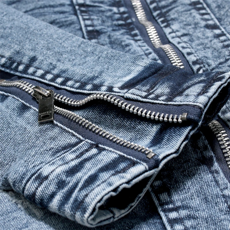 Джинсовая куртка мужская Байкерская, модная однотонная Байкерская д...