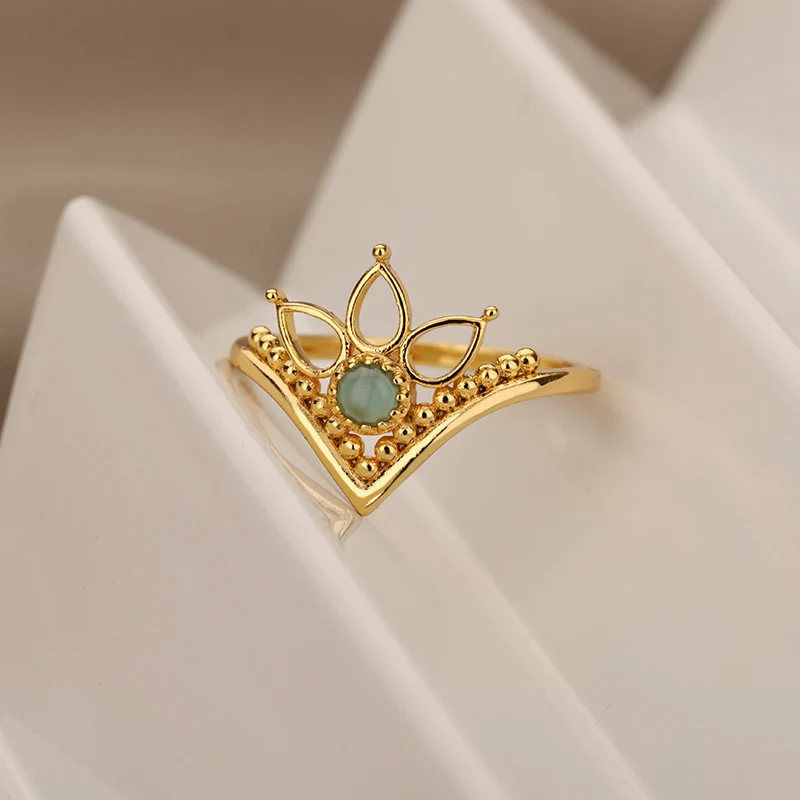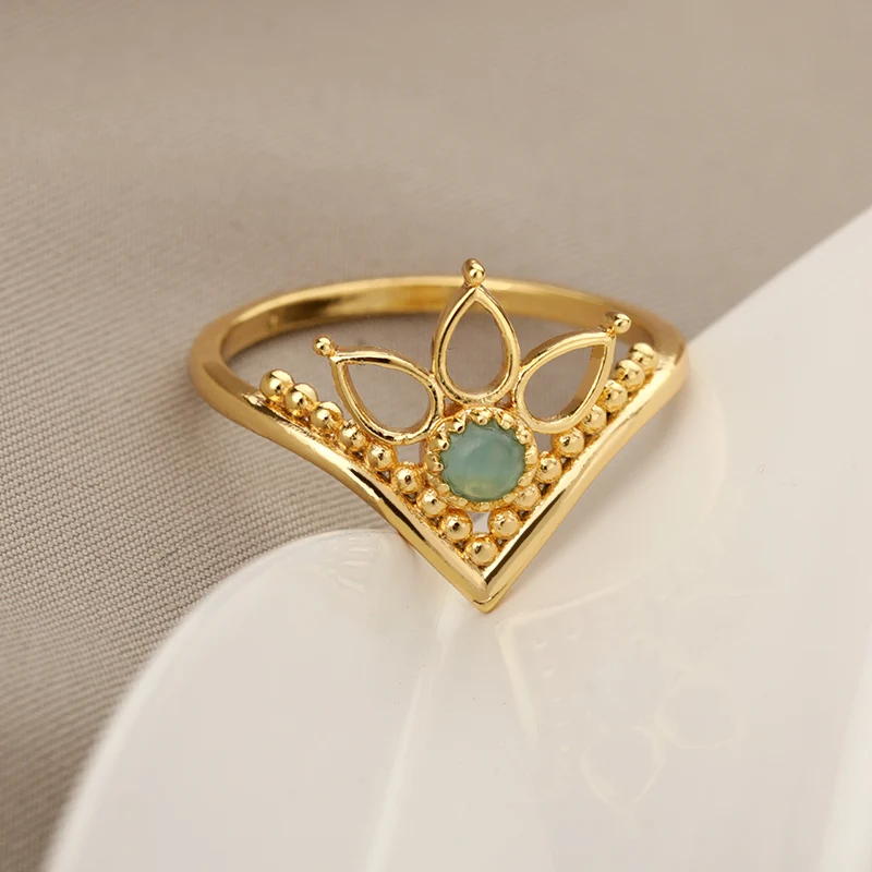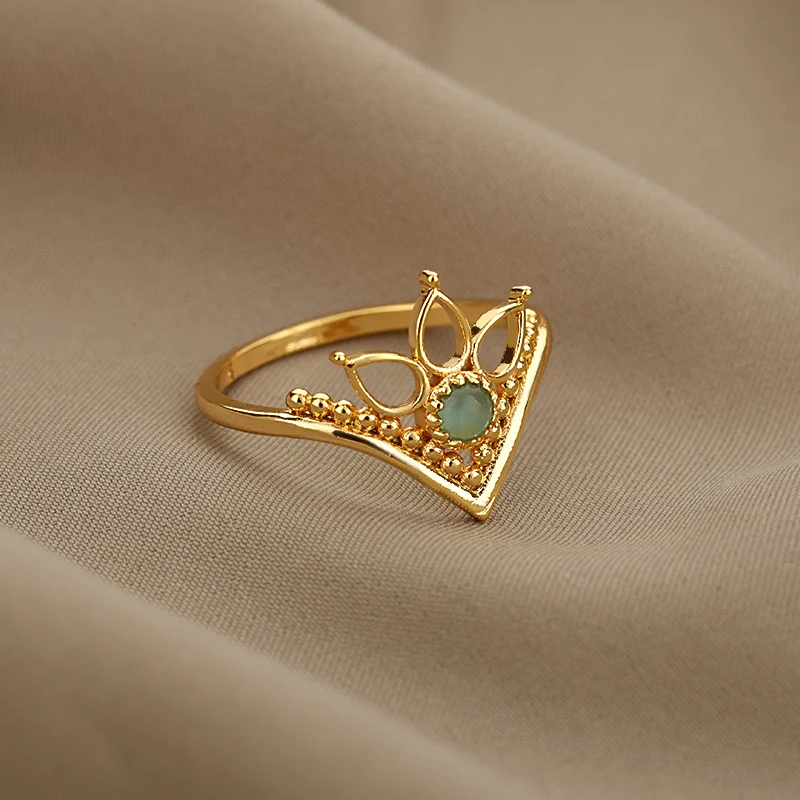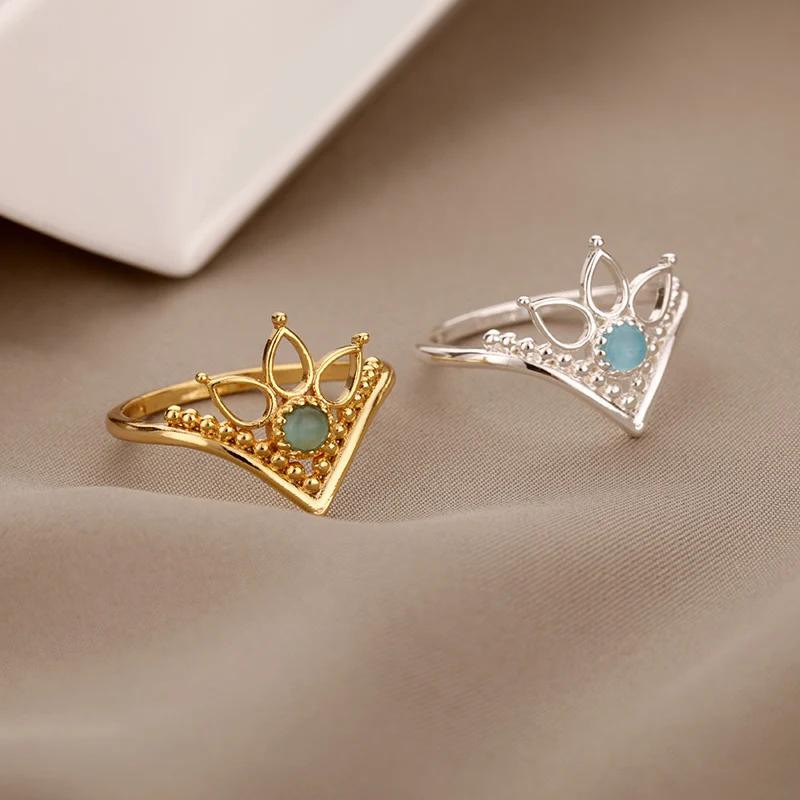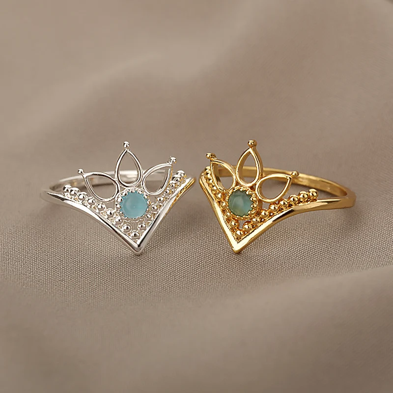 Кольцо с короной и опалом женское, изящное круглое из нержавеющей стали с цветами лотоса, свадебный аксессуар, Подарочная бижутерия