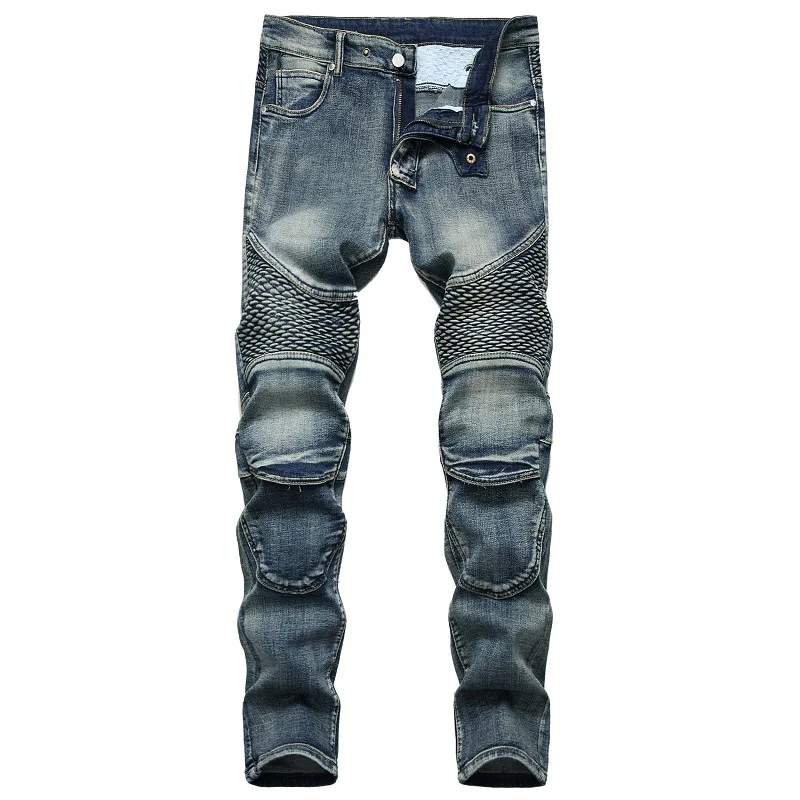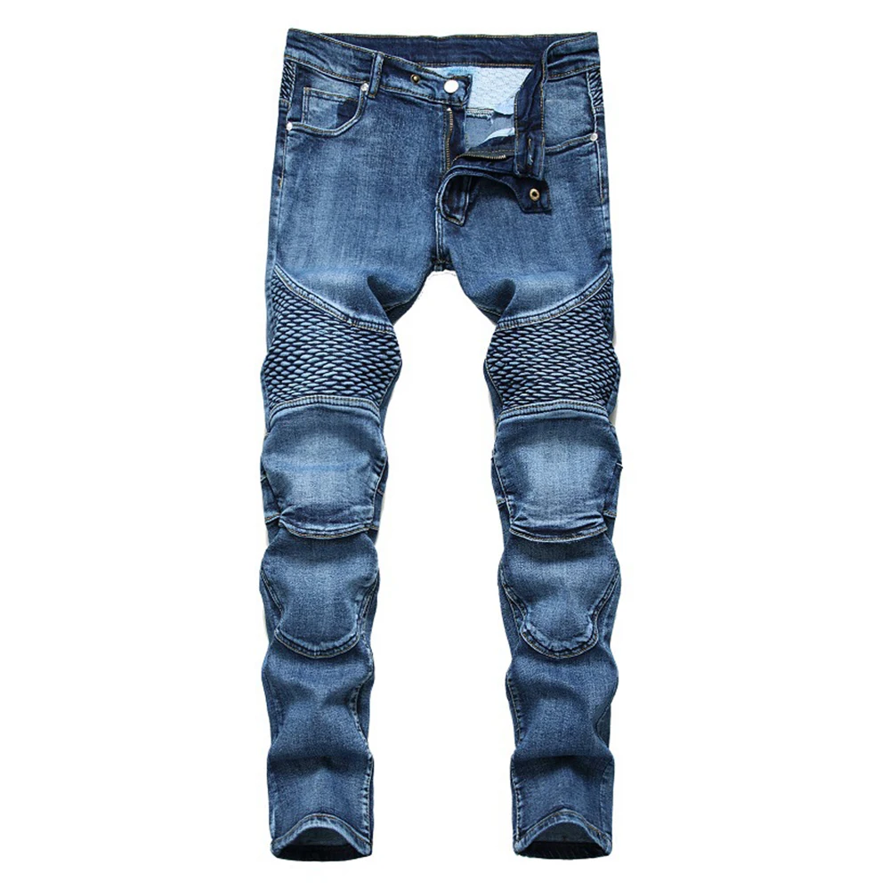 Джинсы мужские мотоциклетные прямые, дизайнерские брюки из денима в...