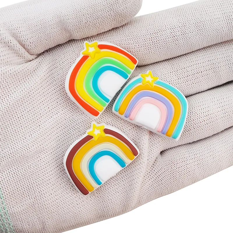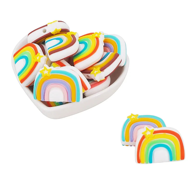 Chenkai, 10 шт., радужные звезды, силиконовые бусины, пищевой класс, сделай сам, Детская соска, кормление, ожерелье для прорезывания зубов, сенсорные аксессуары, игрушка