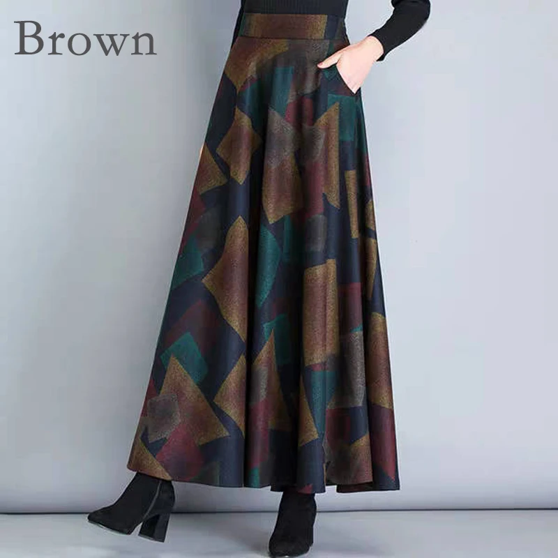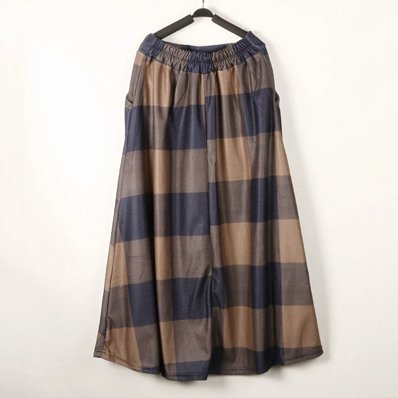 Элегантная женская юбка с высокой талией, винтажная юбка макси в клетку с принтом, сезон осень-зима-весна, винтажная шерстяная трапециевидная длинная юбка, сексуальная