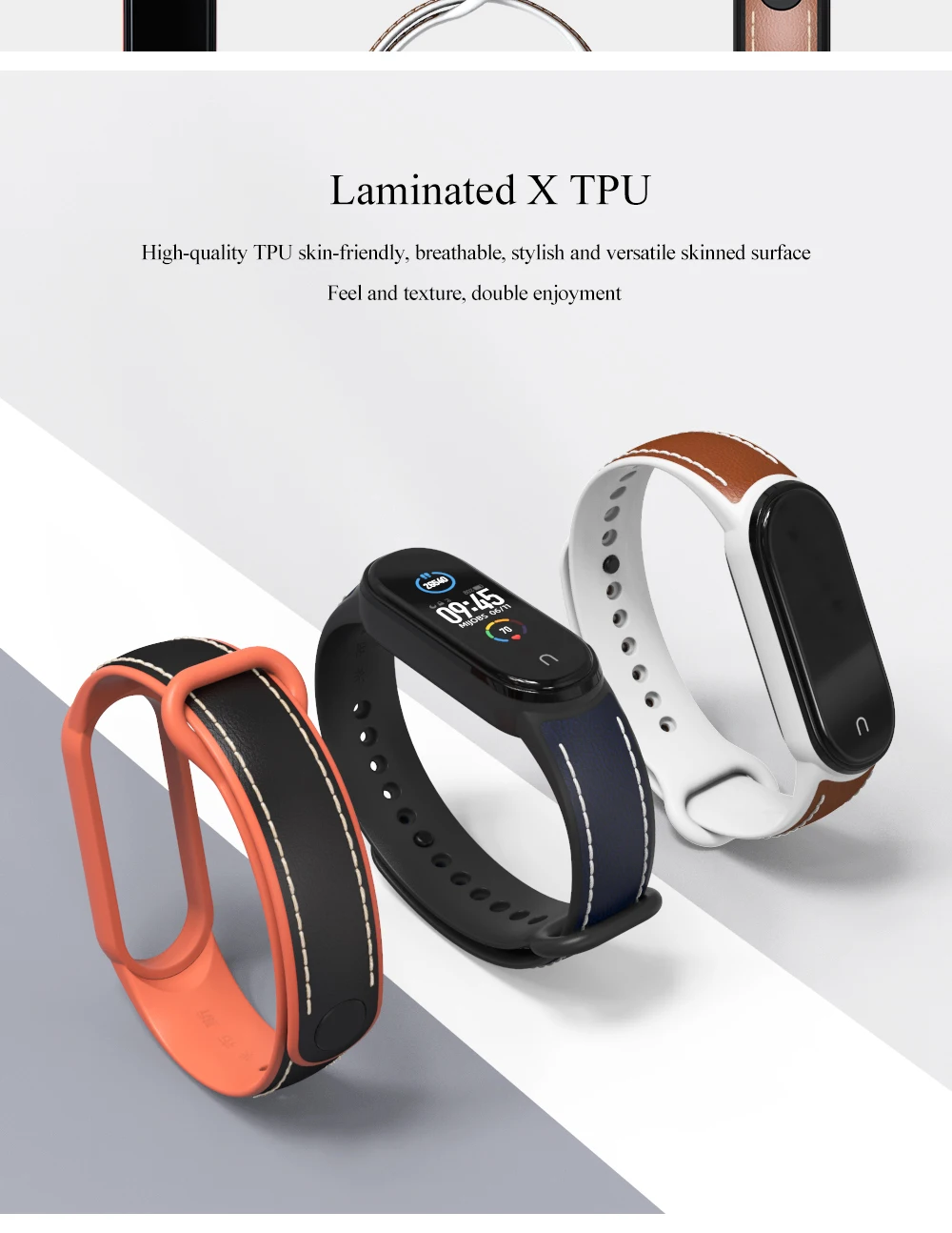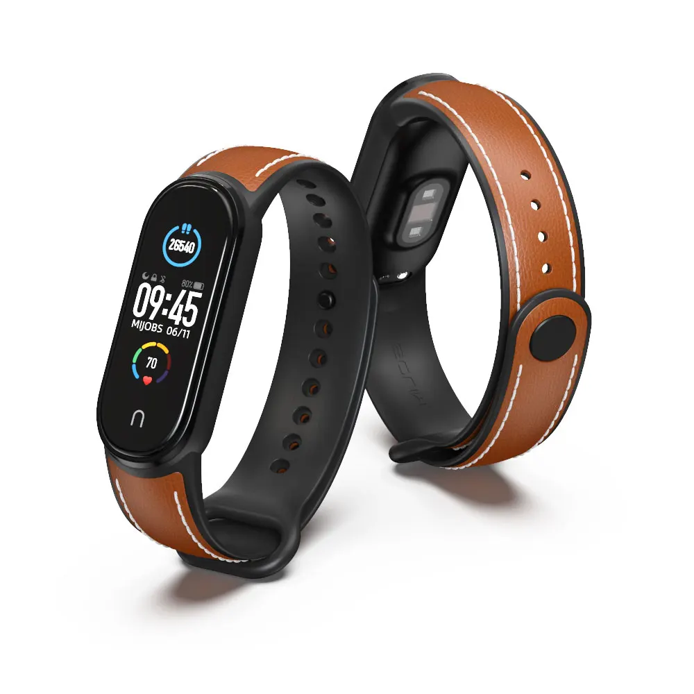 Сменный кожаный ремешок для Mi Band 5, 6, браслет на Mi Band 5, Воздухопроницаемый спортивный браслет из ТПУ Для Xiaomi Band 5