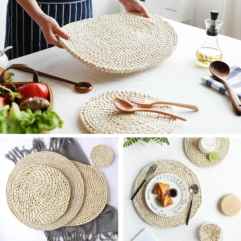Плетеный коврик из ротанга для обеденного стола, Теплоизоляционный подставка для кастрюль, круглые подставки, подставка под кружку для кофейных чашек и чая