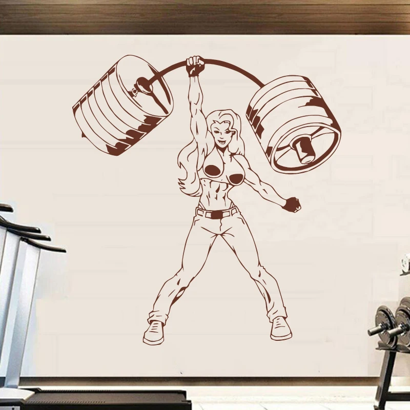 Спортивная Тяжелая атлетика сексуальная девушка тела человека стены Стикеры Фитнес блины для кроссфита спортивный клуб тренировки Наклейка на стену винил домашний декор