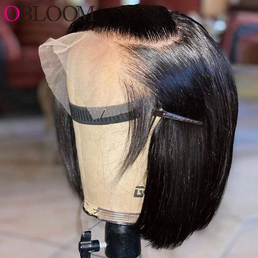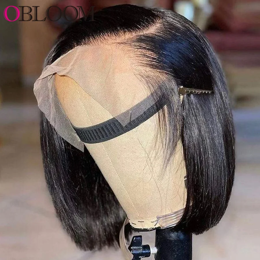 Короткий парик Боб 13x4, парик из натуральных волос на фронтальной сетке, прямой парик с сетчатой основой 4X4, предварительно выщипанные отбеленные парики с узлом для женщин