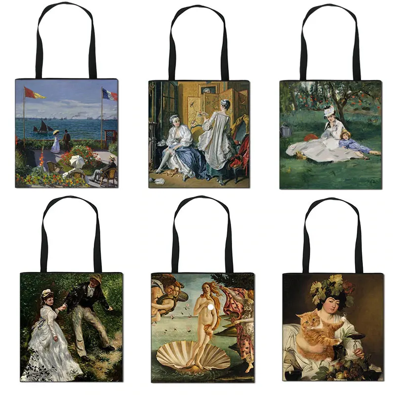 Женская сумка для покупок с масляной живописью, повседневная портат...