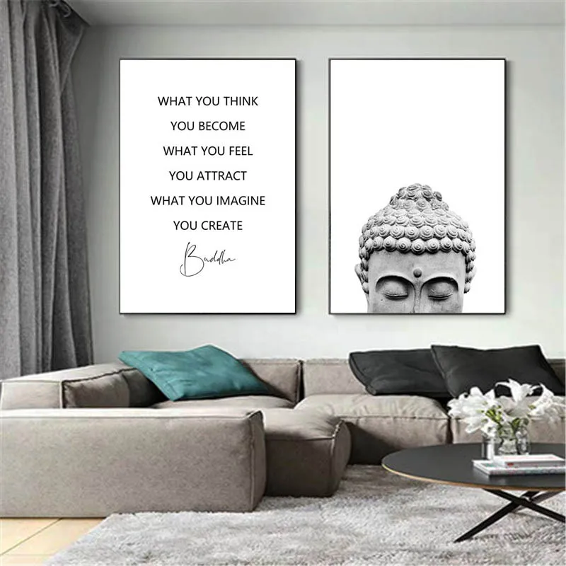 Статуя в виде головы Будды дзен, цитаты, холст, живопись, печать, минималистичное современное искусство, Настенная картина, буддизм, домашний декор
