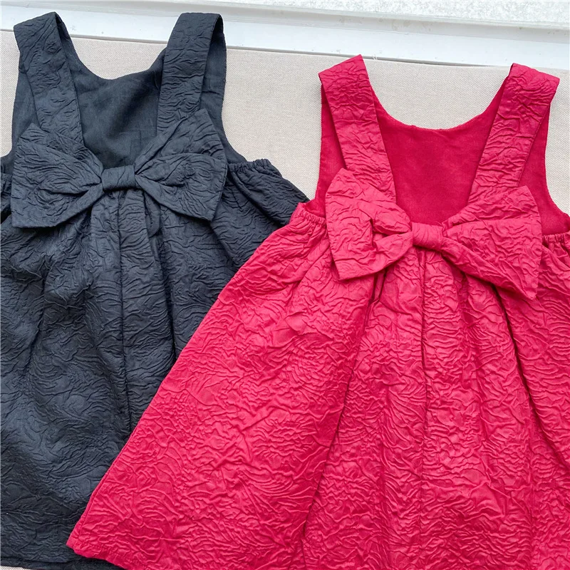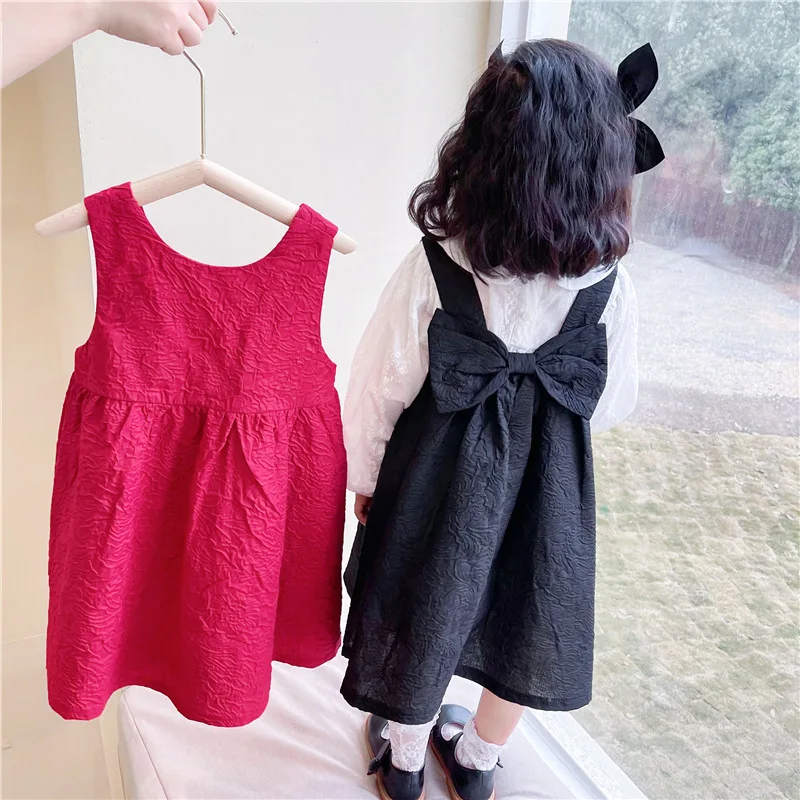 Новое поступление 2022, весеннее модное платье без рукавов для девочек, детское платье принцессы в Корейском стиле с бантом