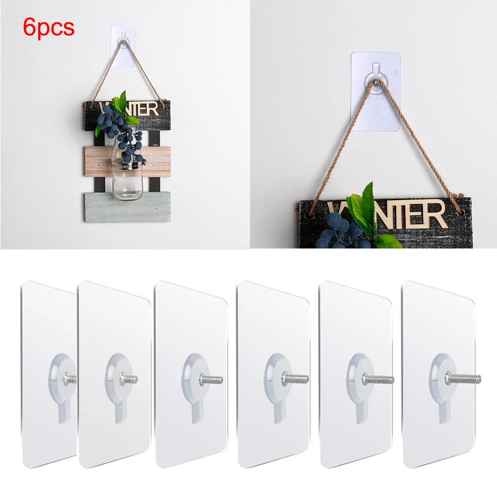 6 шт. прочный клейкий бесшовный настенный крючок прозрачный водонепроницаемый прочный крепежный винт стойка для кухни ванной комнаты держатель вешалки