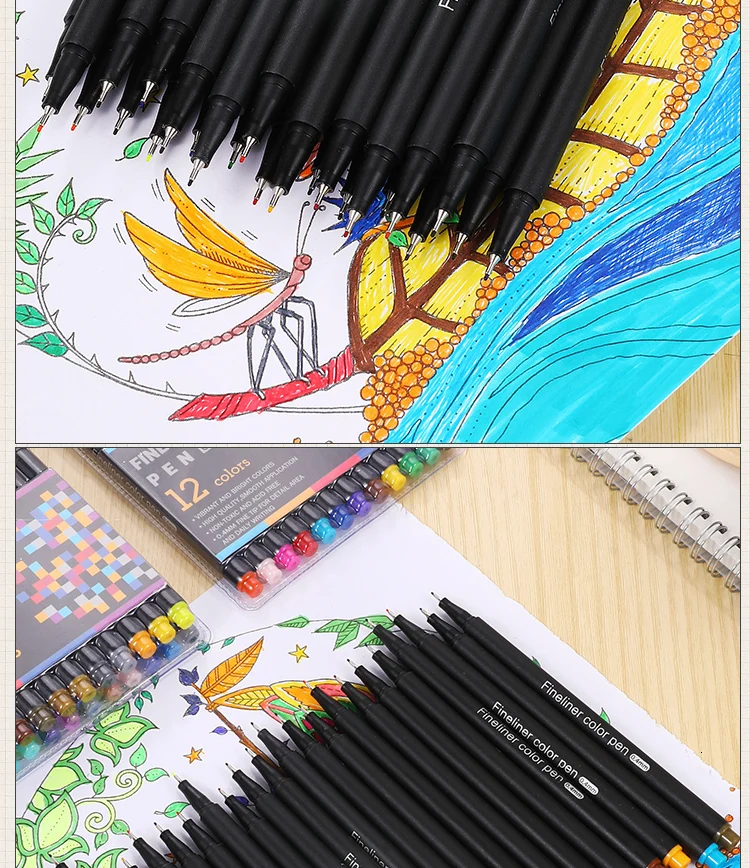 Линейные маркеры, 0,4 мм, 12 цветов, ассорти чернил на водной основ...