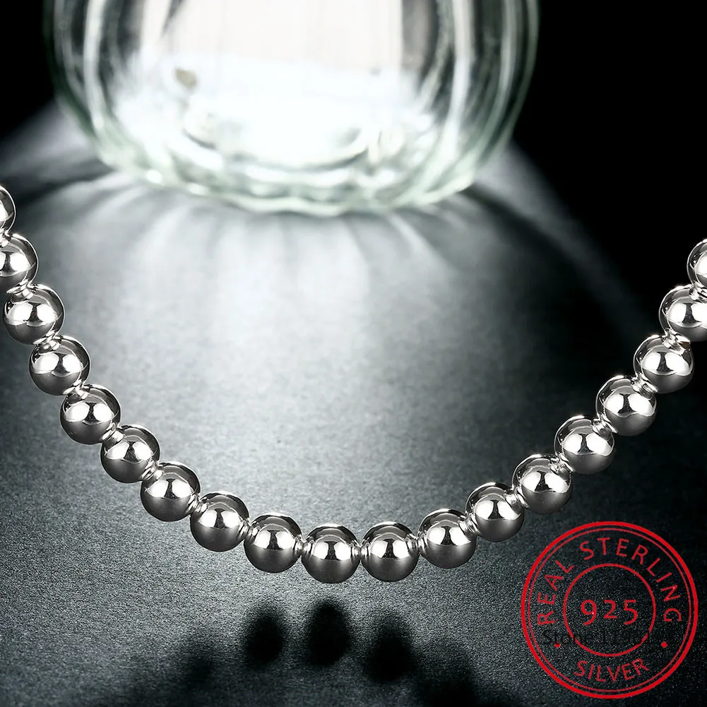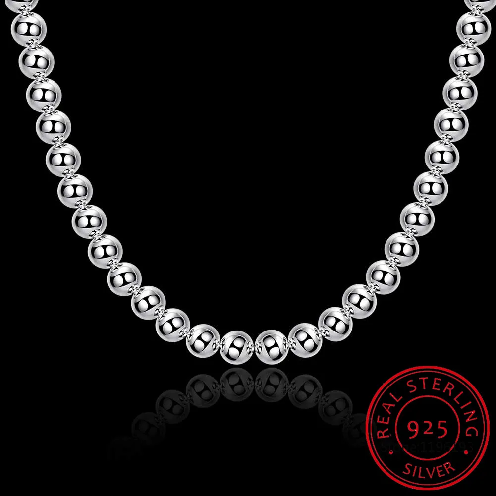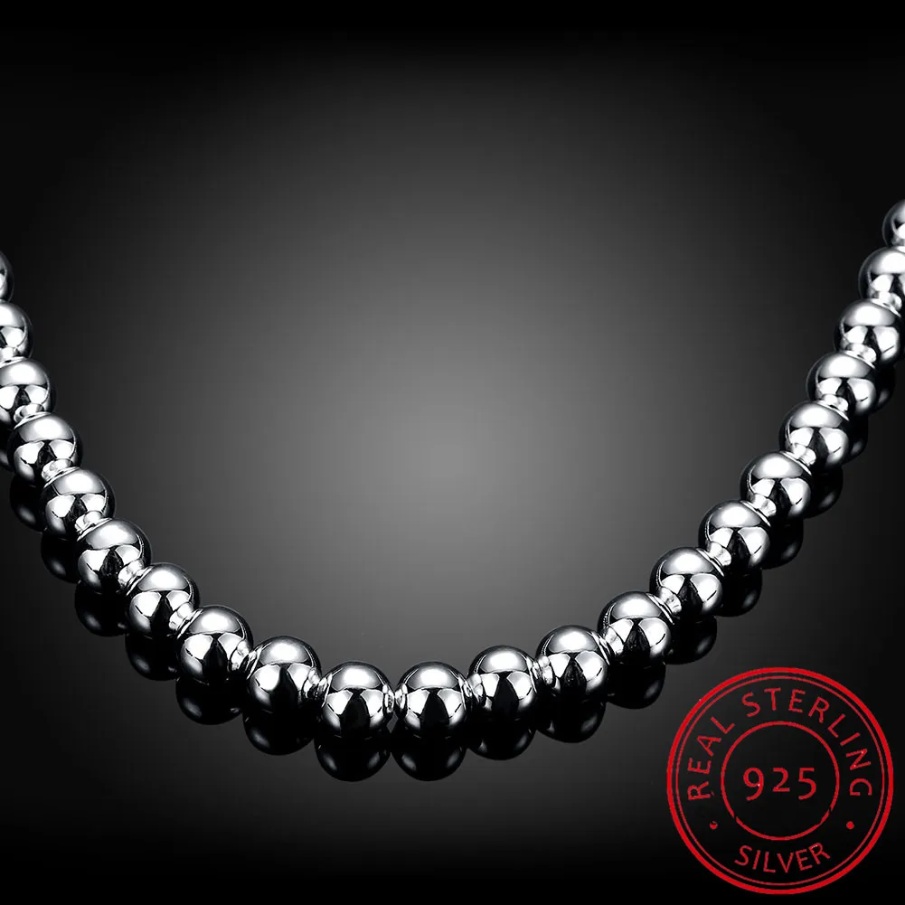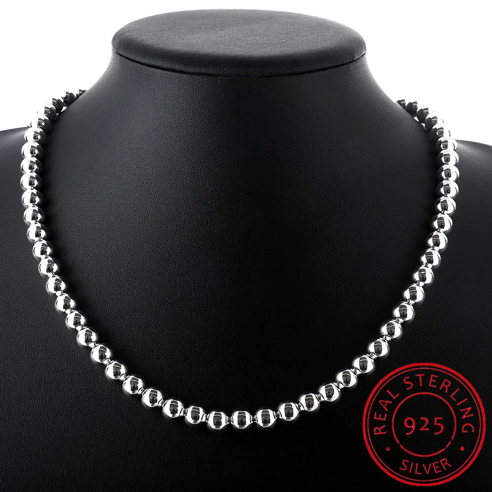 Женское ожерелье из серебра 925 пробы, с гладкими бусинами, 6 мм