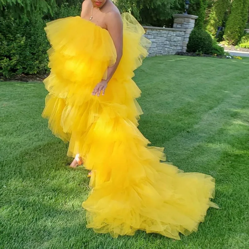 Золотистое желтое Тюлевое платье для женщин с многоярусными оборками с длинным шлейфом платье для выпускного вечера вечерние платья для фотосессии платье на заказ
