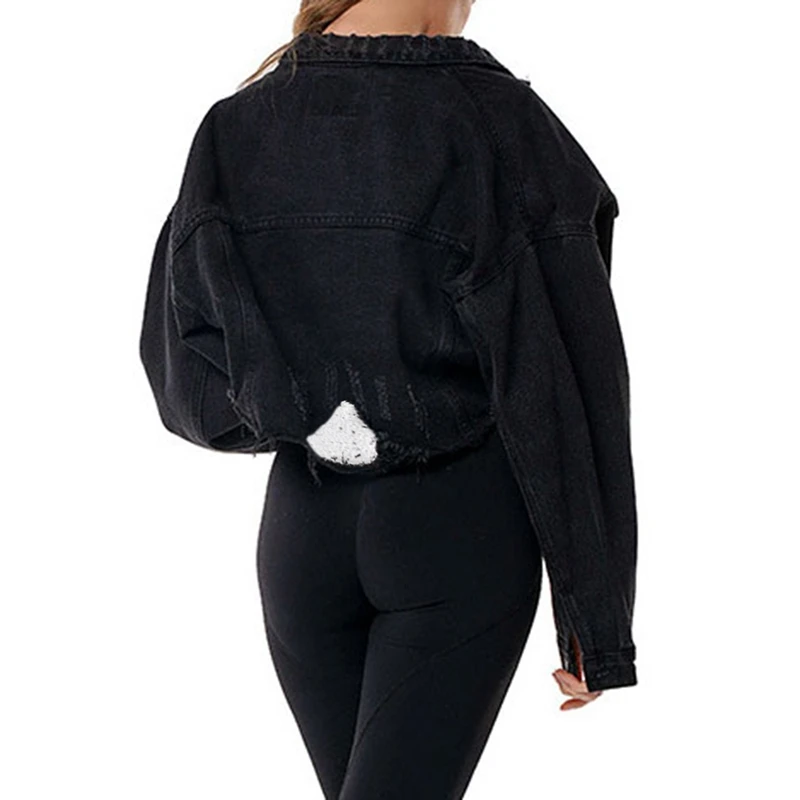 Куртка Muyogrt джинсовая женская в стиле оверсайз, винтажная короткая куртка из денима с длинным рукавом, Повседневная Свободная Черная куртка-бомбер