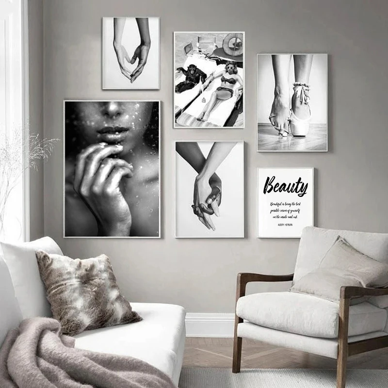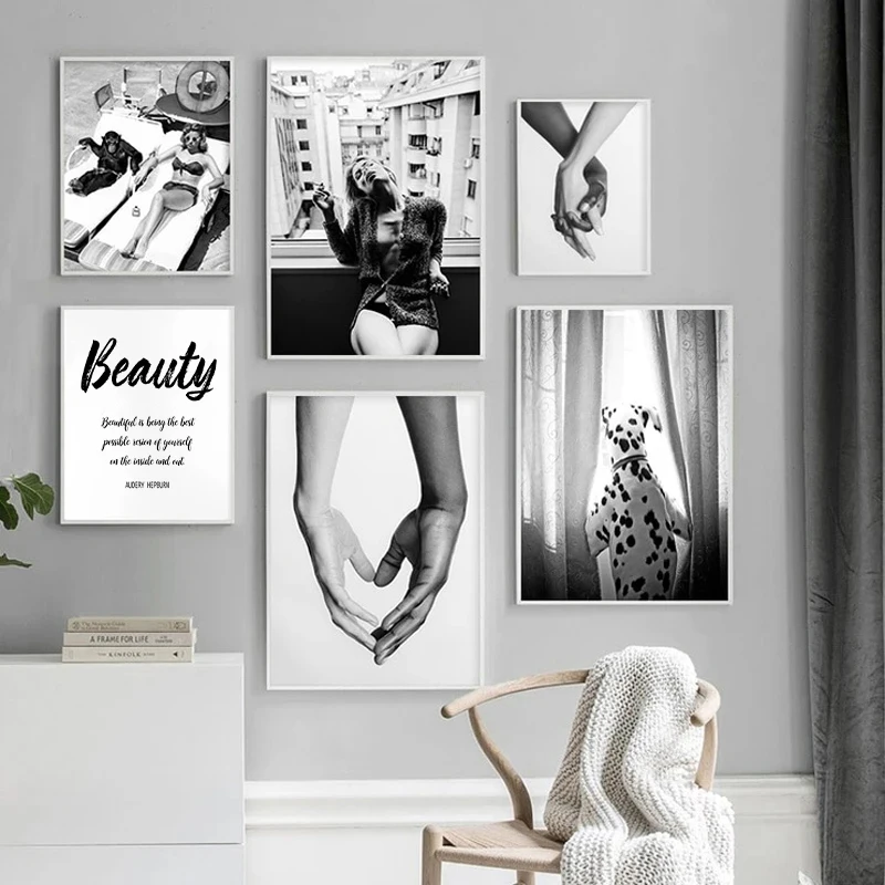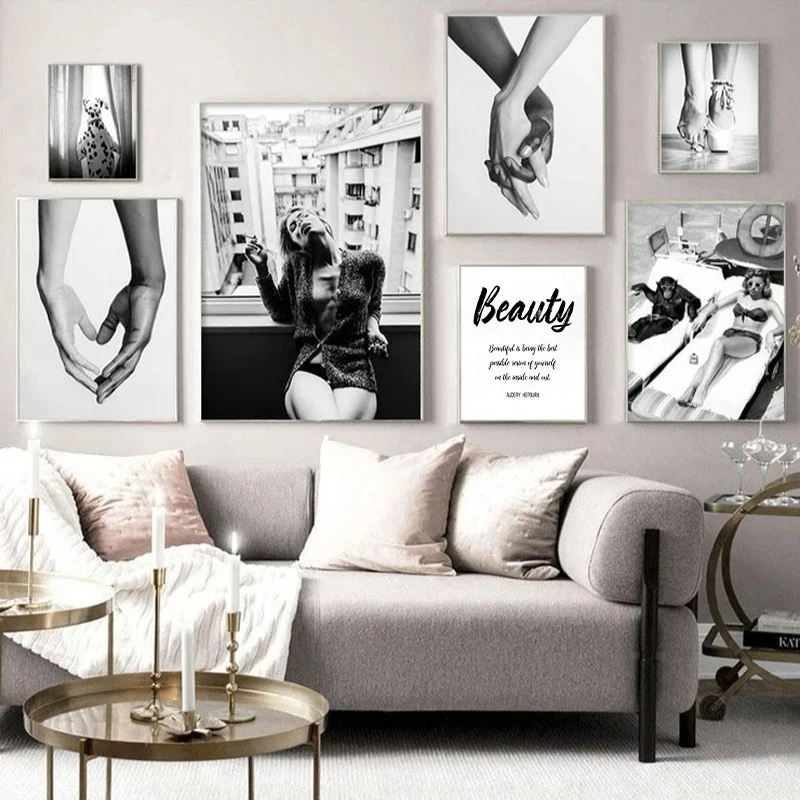 Привлекательный модный постер Hand in Smoke Girl, черная, белая, серая Картина на холсте, настенное искусство, декоративная картина, декор для гостиной