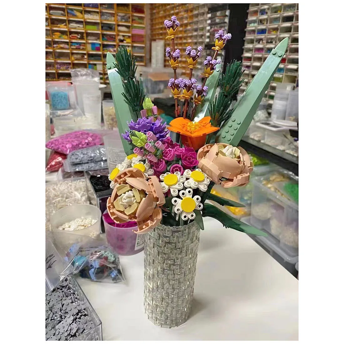 (Под заказ) 400 шт. MOC прозрачные строительные блоки ваза фотоальбом подарок для букета цветов 10280 набор блочных игрушек (без цветочного набора)