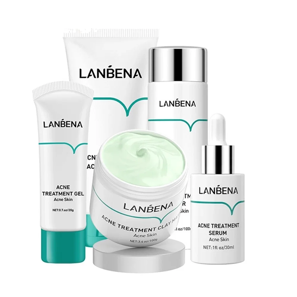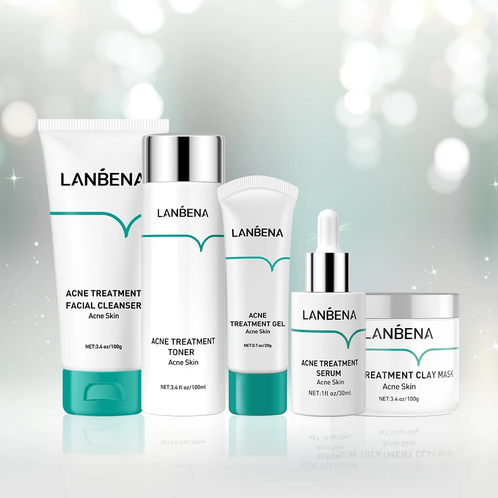 Набор LANBENA для удаления акне, Тоник для лица, гель для лица, маска против грязь от акне, сыворотка для устранения акне, 5 шт.