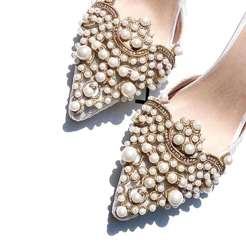 Женские жемчужные зажимы для обуви на высоком каблуке; Свадебные туфли с цветочным украшением; Модные туфли для вечеринки; Очаровательные туфли с пряжкой