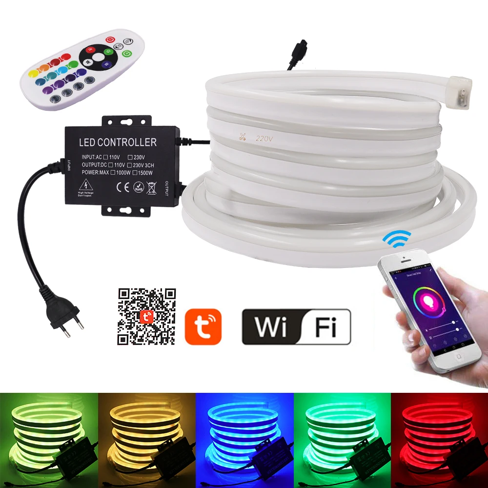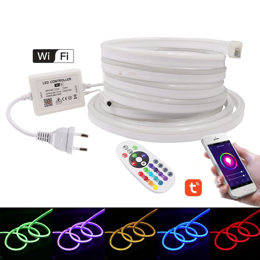 Цветная (RGB) неоновый светильник, Wi-Fi, Управление RGB Светодиодные ленты светильник + пульт дистанционного управления Гибкая неоновая вывеска для организаций и магазинов Водонепроницаемый лента 110 в США 220 В ЕС AU UK 1-100 м