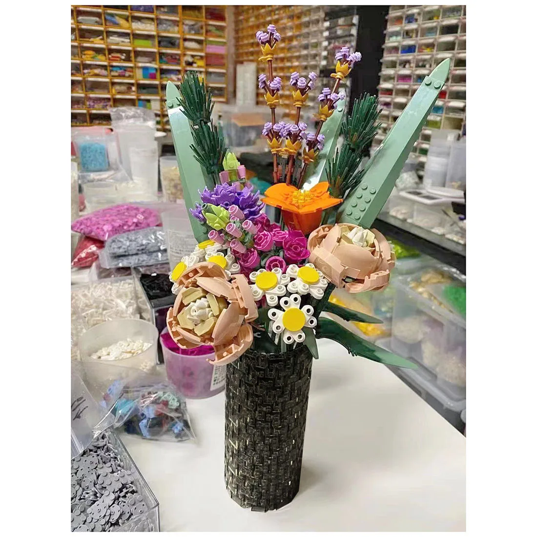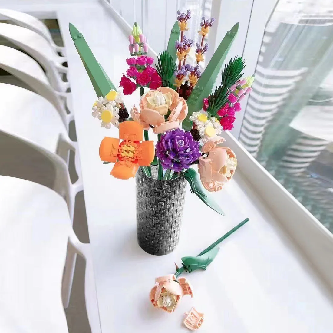 400 шт., прозрачные строительные блоки, ваза, фотоэлемент для цветочного букета, модель 10280, строительные наборы, подарок (без цветочного набора)-серый