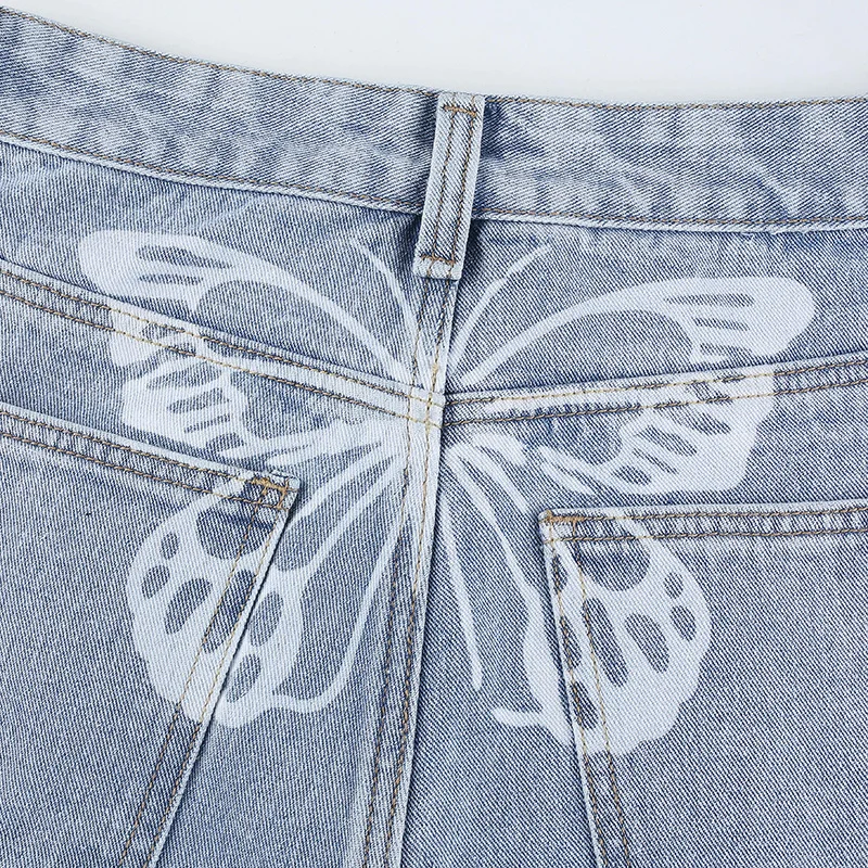 В стиле хип бабочка печати y2k Harajuku модные джинсы для женщин Ул...