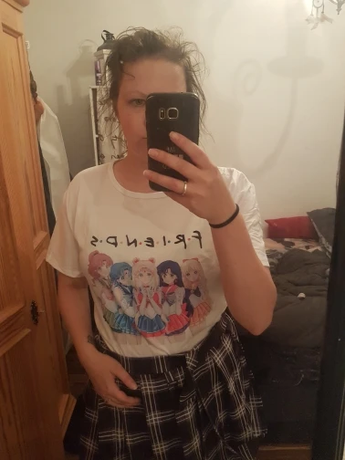 Товар доставлен за 2 недели. Был объединен с другими на складе консолидации и отслеживался до места вручения. С продавцом не общалась. На ОГ 86см и ОТ-70см брала размер L, чтобы не в обтяжку было. Материал мягкий, приятный к коже. Бирок кроме размера нет, но думаю 100% синтетика. Присутствует неприятный запах (надеюсь после стирки исчезнет). Пошив удовлетворительный. Рисунок чёткий, яркий. Для цены 375 руб отличная футболка.