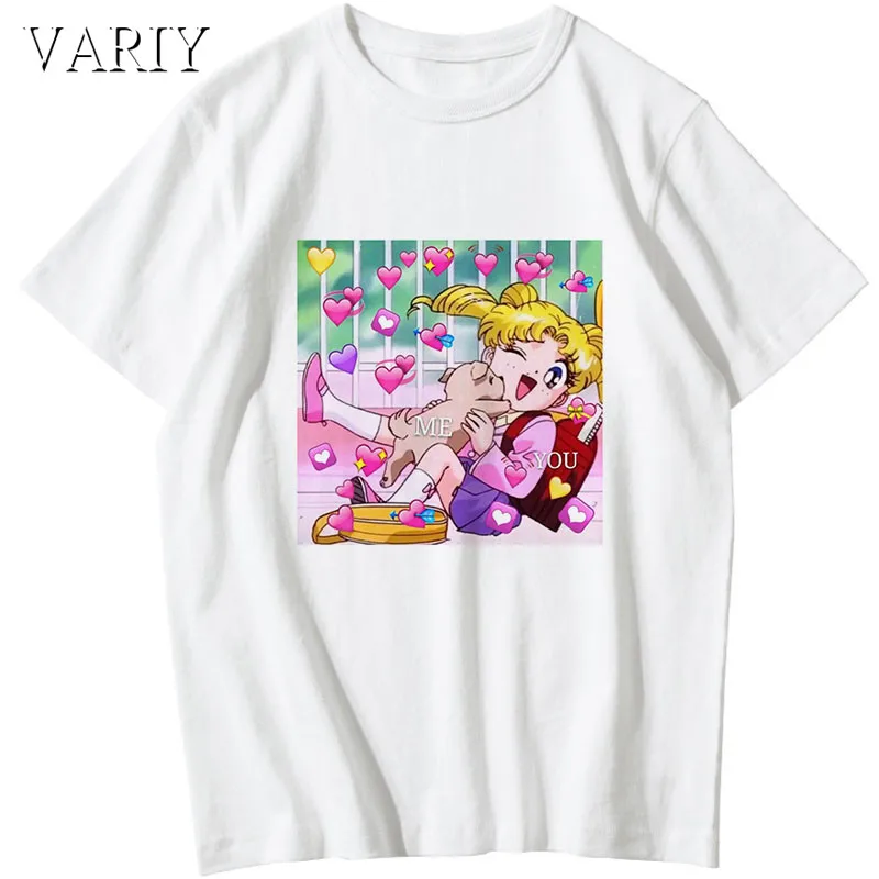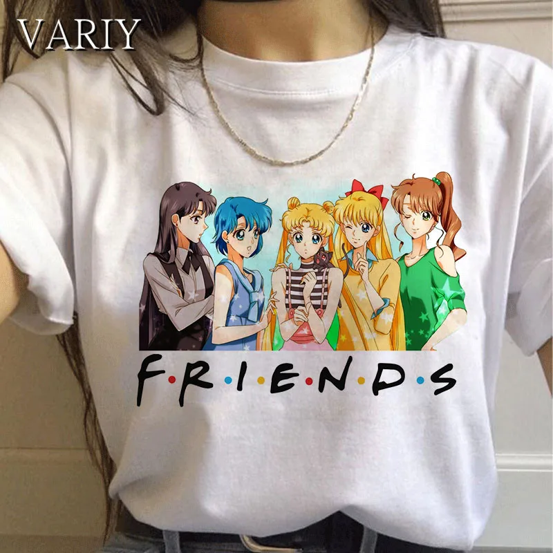 Аниме 90s друзья Футболка Harajuku женская одежда футболка Эстетическая винтажная кошка Милая женская футболка Kawaii футболка Ullzang