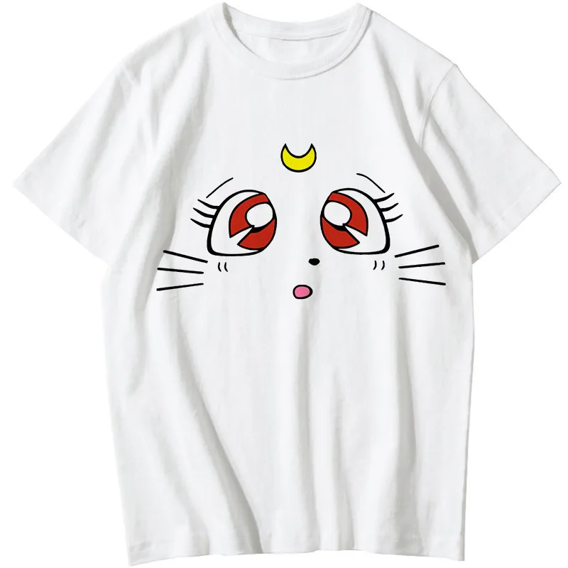 Женская Винтажная футболка в стиле аниме 90-х, с принтом кошки