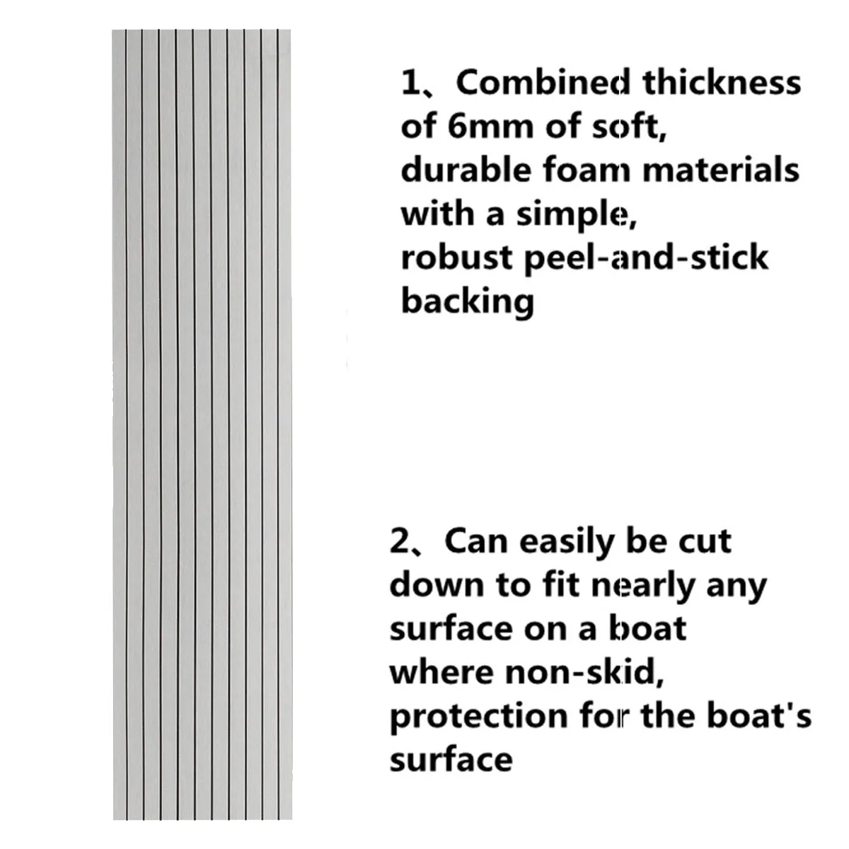 Особенности:-Нескользящие листы из пенопласта EVA из искусственного тика обеспечивают непревзойденный комфорт и исключительную тягу-даже при влаге!-Они имеют комбинированную толщину 5 мм мягких, прочных пеноматериалов с простой, прочной подложкой из кожуры и палочки.-Имейте вид тика без сложной установки, затрат и технического обслуживания, необходимого для настоящего дерева-Можно легко отрезать, чтобы соответствовать практически любой поверхности на лодке, где не скользит, или требуется защита поверхности лодки.
