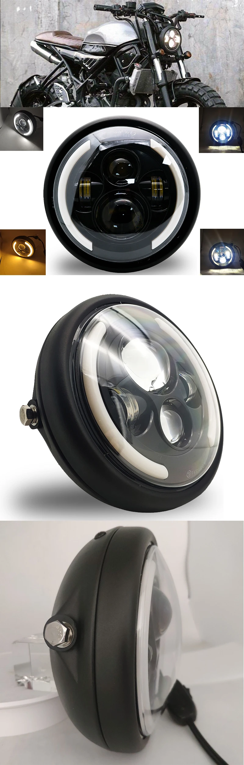7,5 дюймов Универсальный Cafe Racer круглый мотоцикла светодиодный налобный фонарь расстояние светильник ремонт 7,5 "мотоциклетная Передняя светильник Cafe Racer