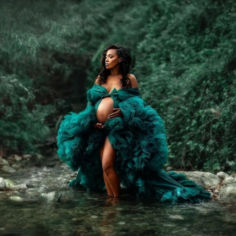 Темно-зеленые тюлевые платья для беременных для фотосессии с оборками пышный халат одежда для беременных с бантом на заказ
