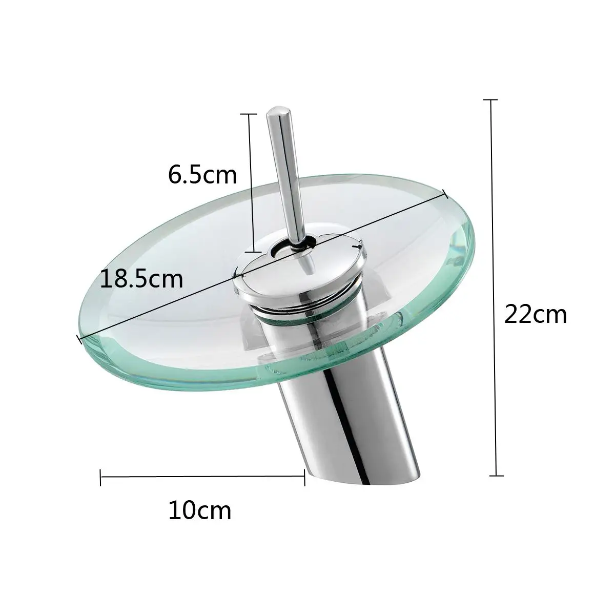-Однорычажный смеситель для раковины из цельного стекла с водопадом-Конструкция наклона крана выпадает из воды, а поверхность сделана из толстого плексигласа, личного вкуса и моды, ручка может вращаться на 360 градусов.-Горячая и холодная вода. 2 подушки покрывают небольшие аксессуары, два шланга 50 см, диаметр стеклянного диска 18 см, эффекты водопада, придавая Вам различное ощущение купания с горячей и холодной водой!Спецификация:Материал: медь, стеклоОтделка: полированный хромСердечник клапана: керамический сердечник клапанаСтруктура: ОднослойнаяФункциональные категории: смесительный кранТип: смеситель для раковиныАксессуары: две 50 см впускные трубы и монтажные аксессуары