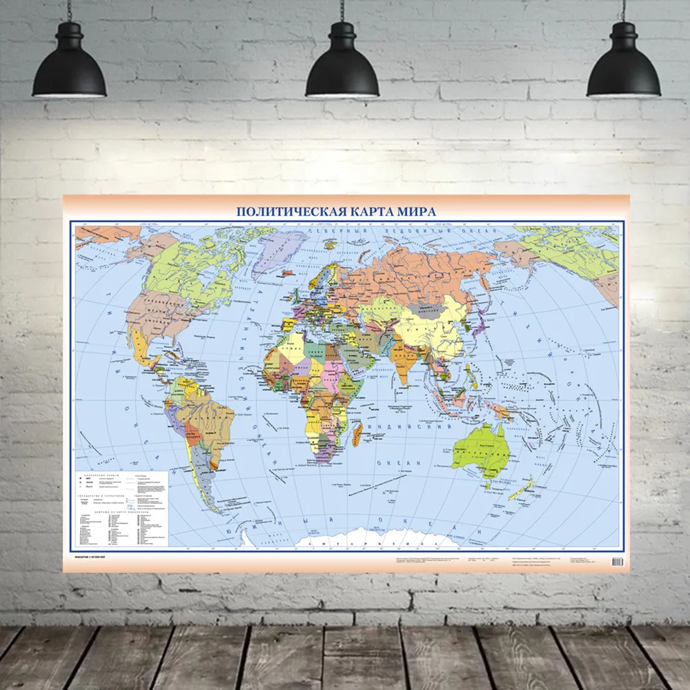150*100 см карта мира на русском языке Нетканая Картина на холсте д...