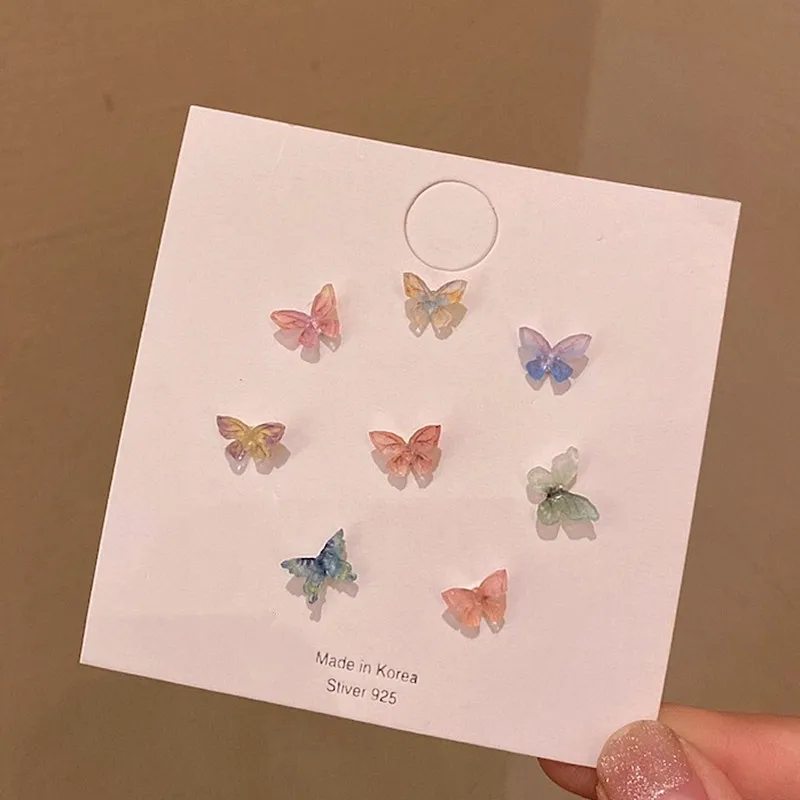 набор сережек серьги маленькие Модный набор сережек-бабочек с изобр...