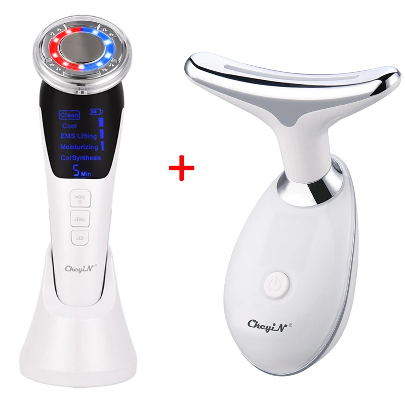 Светодиодный фотонный массажер для шеи и EMS, аппарат для лица, звуковая вибрация, против старения, омоложение кожи лица, лифтинг, укрепляющий