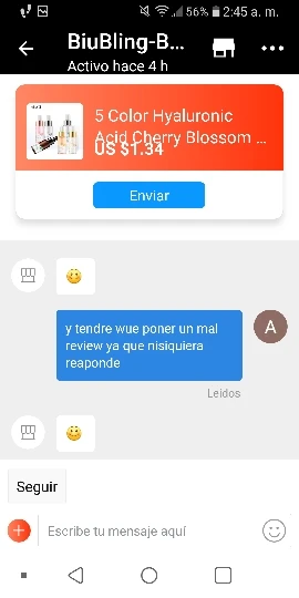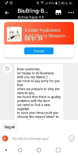 Плохой продавец, я попросил отменить заказ, который у меня не было в наличии (многие продавцы делают это, чтобы поставить низкую цену, поэтому покупки просят вас отменить, и они выходят, что я покупаю, и больше людей видят ваш продукт) И он отказывается отменить заказ, я сказал ему отменить его, Я не отменяю его и не отправляю товар, который у меня не было, но я отправляю его по другому совершенно другому адресу, Я отправил ему сообщения о том, что случилось, куда я отправил свой заказ, и он просто поставил улыбающийся лицо и ничего не ответил, ужасное обслуживание правды