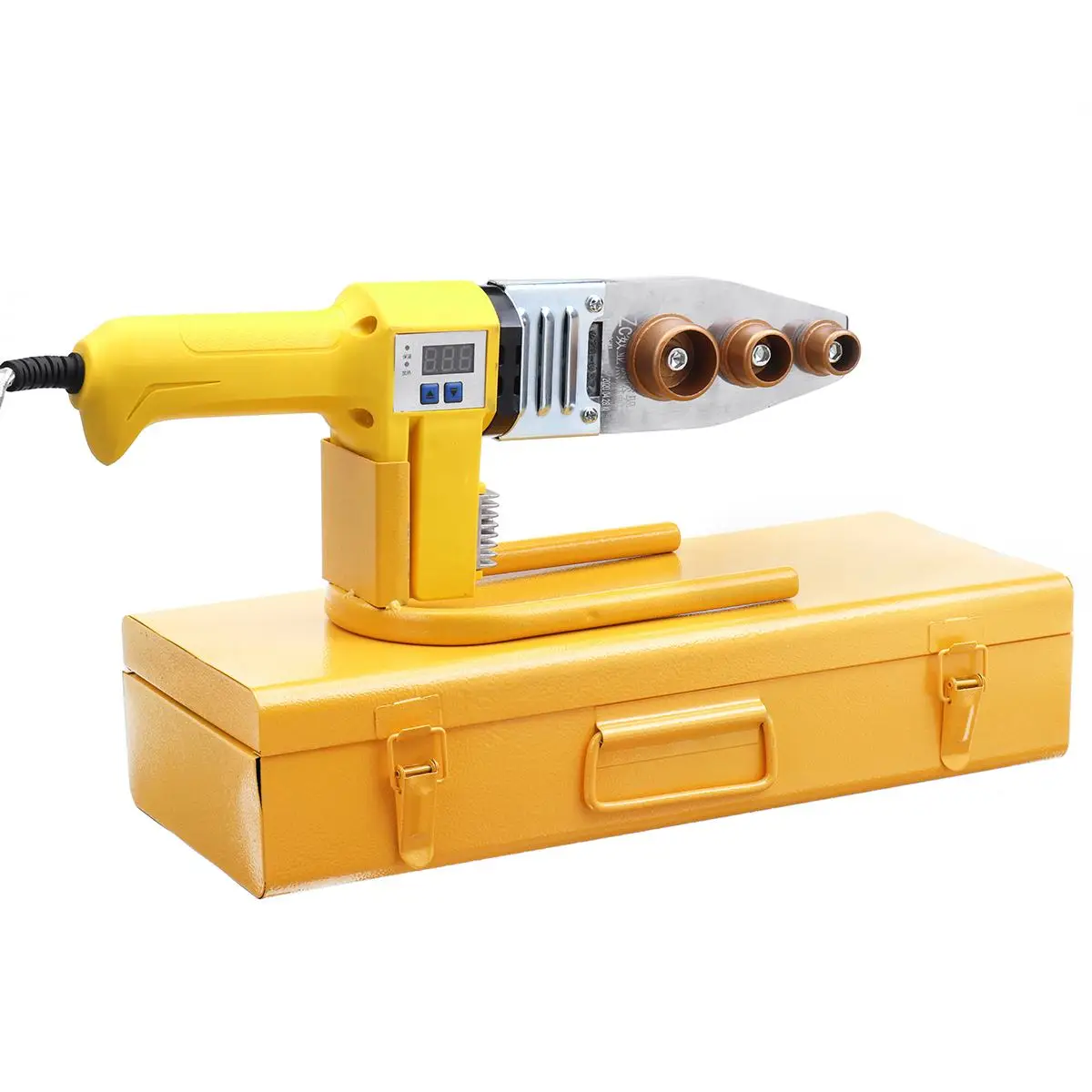 #63 1000 Вт Тип:1 х сварочный аппарат для труб6 сварочных головок (20 мм 25 мм 32 мм 40 мм 50 мм 63 мм)4 x винт1 х гаечный ключ1 х лента1 x опорная полка1 х железный ящик