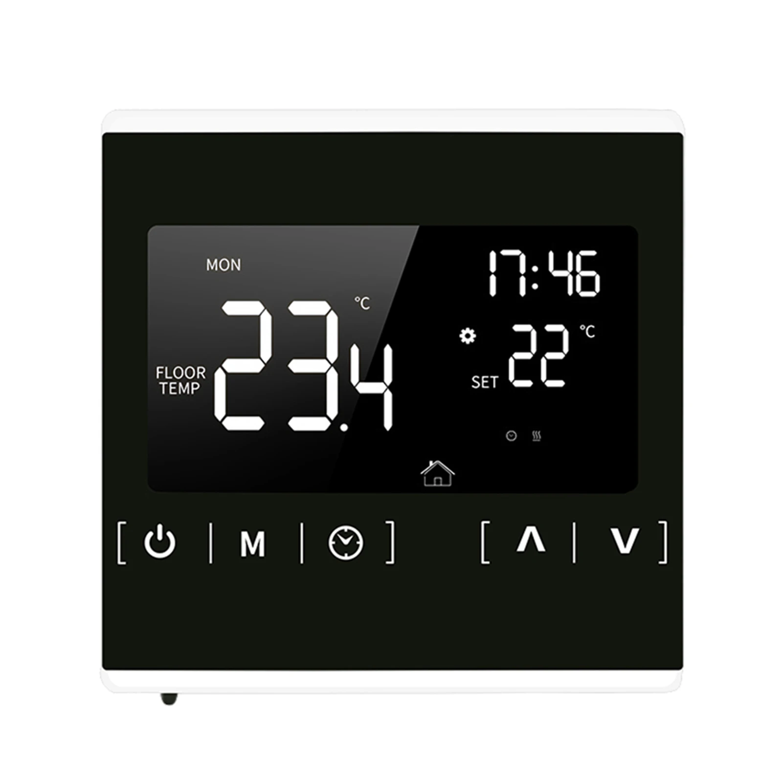 Этот цифровой термостат для напольного отопления использует передовое микрокомпьютерное управление чипом и высокоточный датчик для контроля температуры электрических нагревательных устройств. Управляйте моторизованным шаровым клапаном, моторизованным клапаном, тепловым клапаном, электромагнитным клапаном, нагревателем, электрической нагревательной пленкой и электронагревательным углеродным кристаллом. В основном используется для напольного отопления.Особенности:Термостат с подогревом сенсорного экрана, прост в установке и использовании и удобно сочетается с вашим стилем жизни.Программируйте его на основе вашего графика, чтобы сократить ваши счета за электричество. Гибкие программируемые сроки: 5-2 дня или 6-1 день.В состоянии выключения, функция анти-замерзания при низкой температуре будет автоматически включаться, когда он будет ниже 5 ℃; И защита от перегрева начнется, когда он будет более 7 ℃ для защиты пола.Ручной режим и программируемый режим можно выбрать с 3 метровым внешним датчиком.6 режимов программируемой функции для контроля температуры и времени. Доступны часы и минуты.Функция блокировки клавиатуры для предотвращения неправильного использования детьми.Функция памяти при отключении питания Защитите настройки от сбоя питания.Характеристики:Цвет: черный/белый (по желанию)Материал: Огнестойкий поликарбонат + АБС-пластикВходная частота: 60 ГцВходное напряжение: 85-250 В переменного токаДатчик температуры: термометр NTCТочность контроля температуры: ± 1 ℃Потребляемая мощность: <1 ВтТок нагрузки: 16AКлюч: сенсорное управлениеНастройка температуры: от 5 до 50 ℃Диапазон измерения температуры: -9 ℃ ~ 99 ℃Дисплей: 71*40 мм ЖК-дисплейРасстояние между установленными отверстиями: 60 ммПодходящий Размер коробки: 86*86 ммРазмер изделия: прибл. 86*86*45 мм/3,4*3,4 * 1.77inВес изделия: прибл. 135g/4,8 ozРазмер посылка: прибл. 10,4*10*8 см/4,1*3,9 * 3.1inВес посылка: прибл. 277 г/9,8 унцийУпаковочный лист:1 * термостат для подогрева пола1*3 метра кабель внешнего датчика2 * крепежные винты1 * Руководство пользователя (на английском и русском языках)Примечание:Для установки термостата необходимо подготовить распределительную коробку на стене, подходящий размер 86*86 мм. И расстояние установки 60 мм.