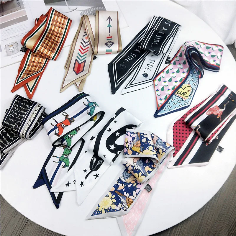 2021 атласный маленький шарф с принтом сделай сам, женские сумки с завязками и ручками, шарф, узкая Длинная лента для запястья, Детские шарфы и повязки
