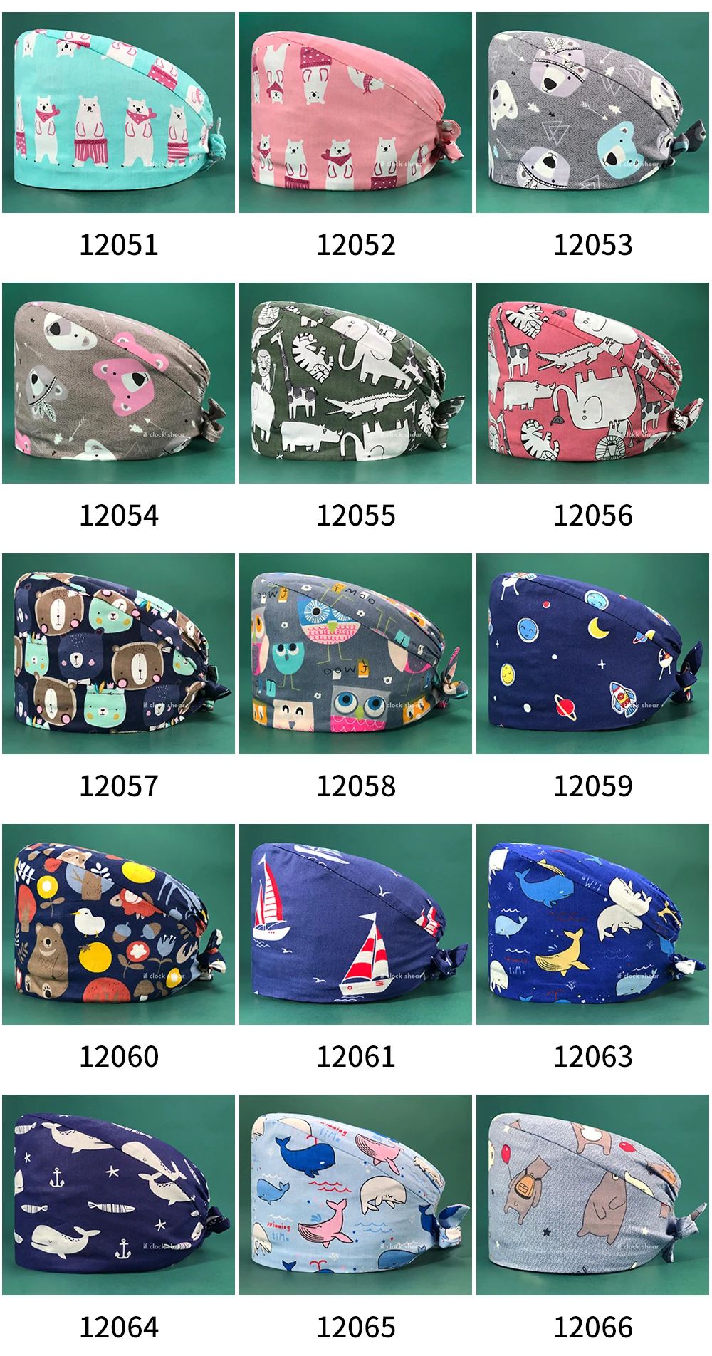 Регулируемые хлопковые медицинские шапочки с принтом животных