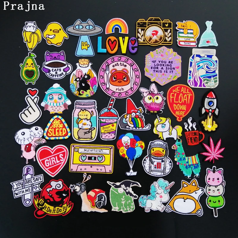 Prajna милый стиль патч мультфильм кошка вышивка патчи для одежды Детская футболка животное железо на патчи буквы любовь стикер сделай сам